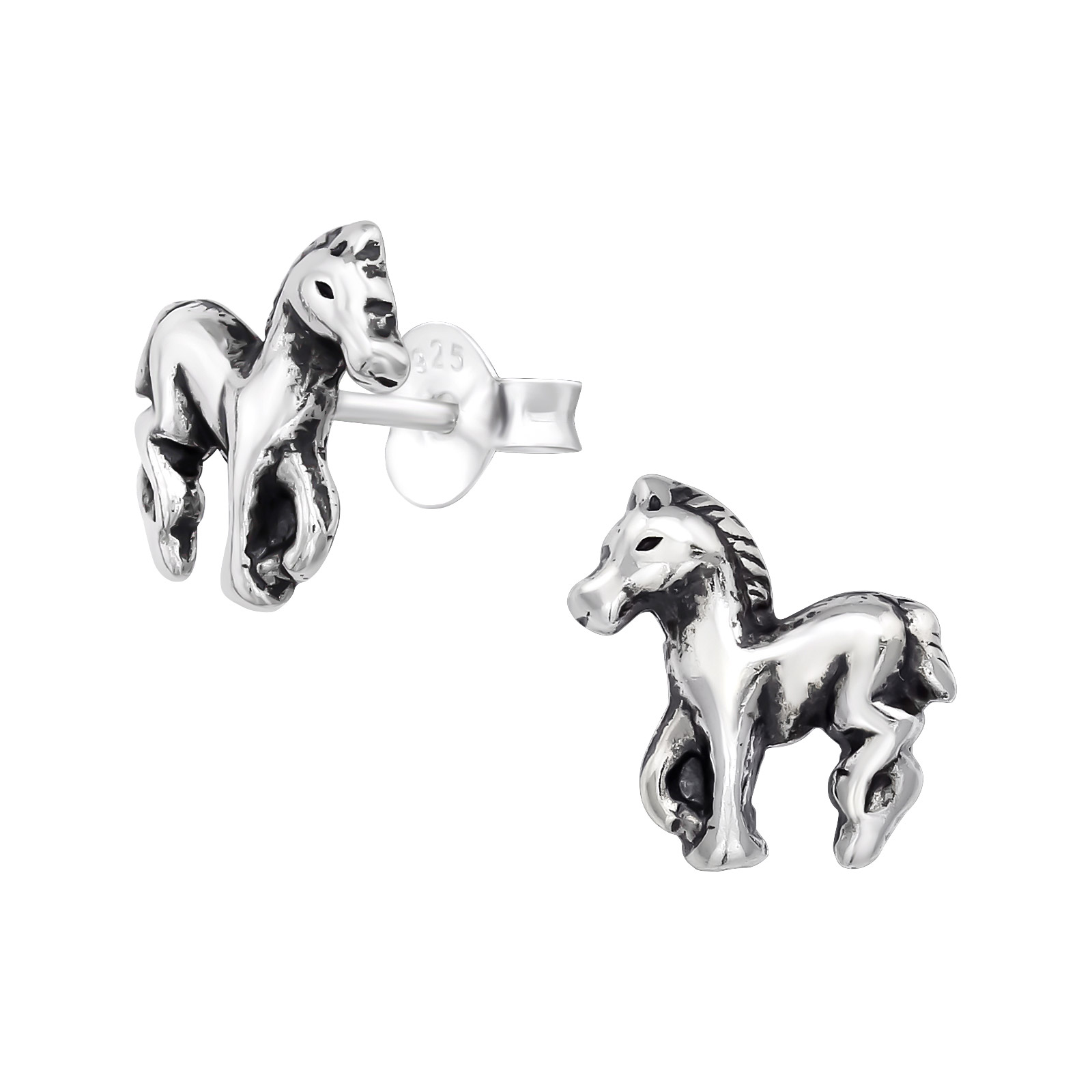 Strieborné puzetové náušnice pre deti - Kone