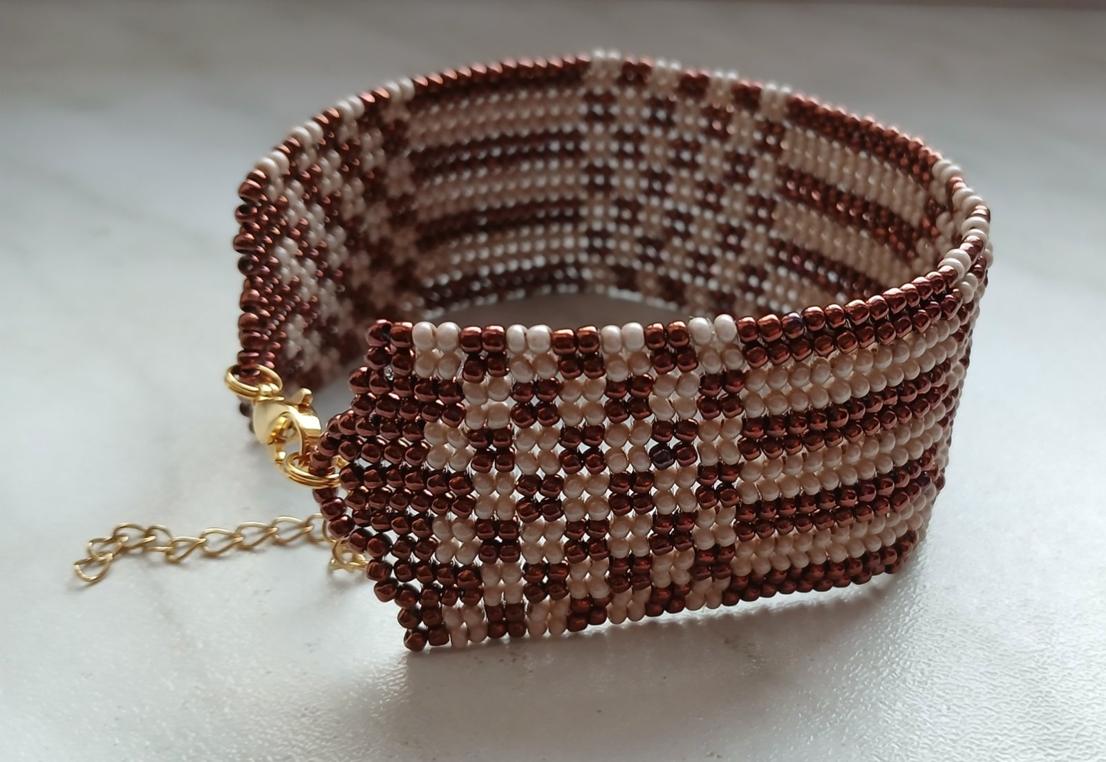 Široký náramok šachovnica zo sklenených korálok