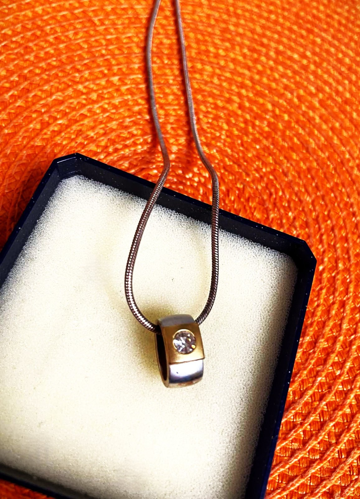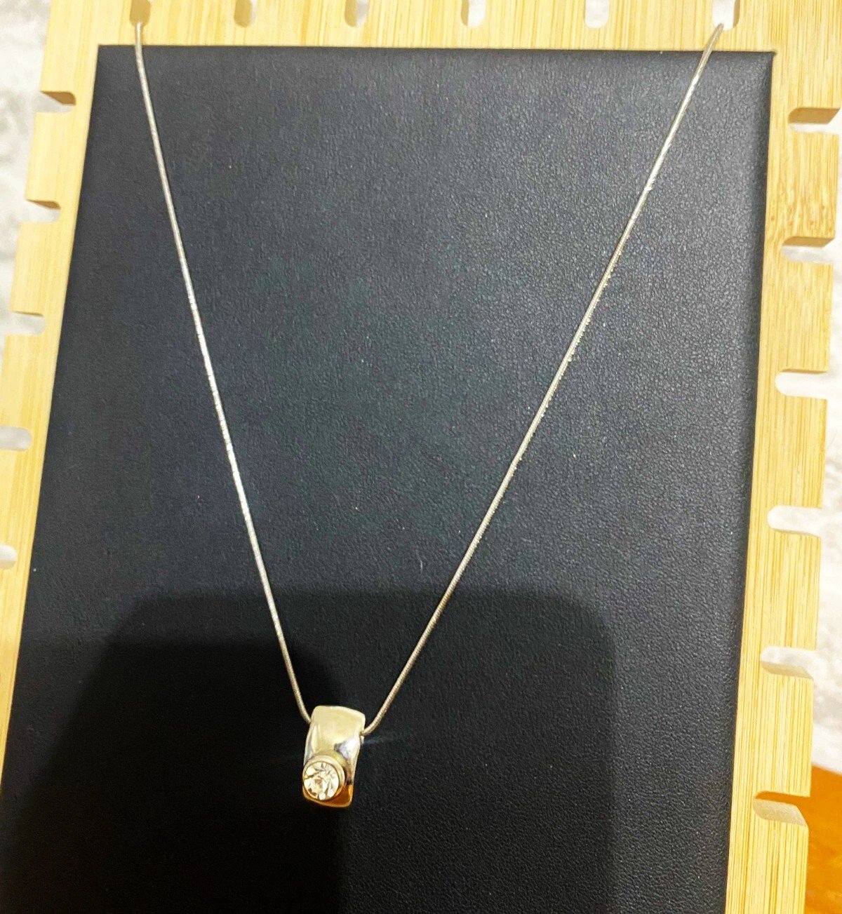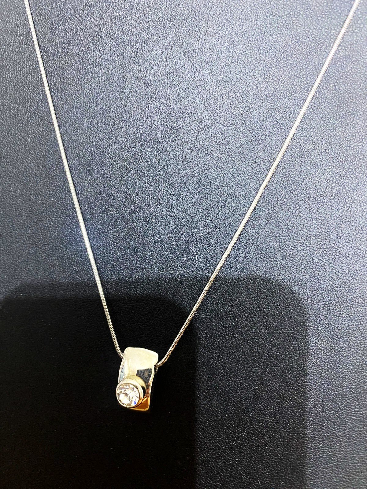 jemná retiazka s príveskom - dvojfarebná - so striedajúcim segmentom matnej striebornej a zlatej farby, s osadeným malým kamienkom - zirkónom, je to kvalitná bižutéria, kombinácia matného striebra a zlata, nie je to striebro, 40 cm