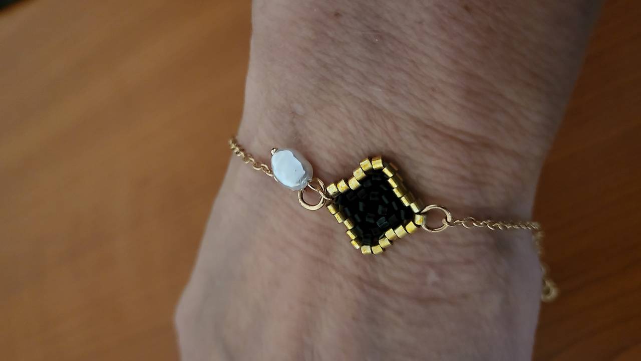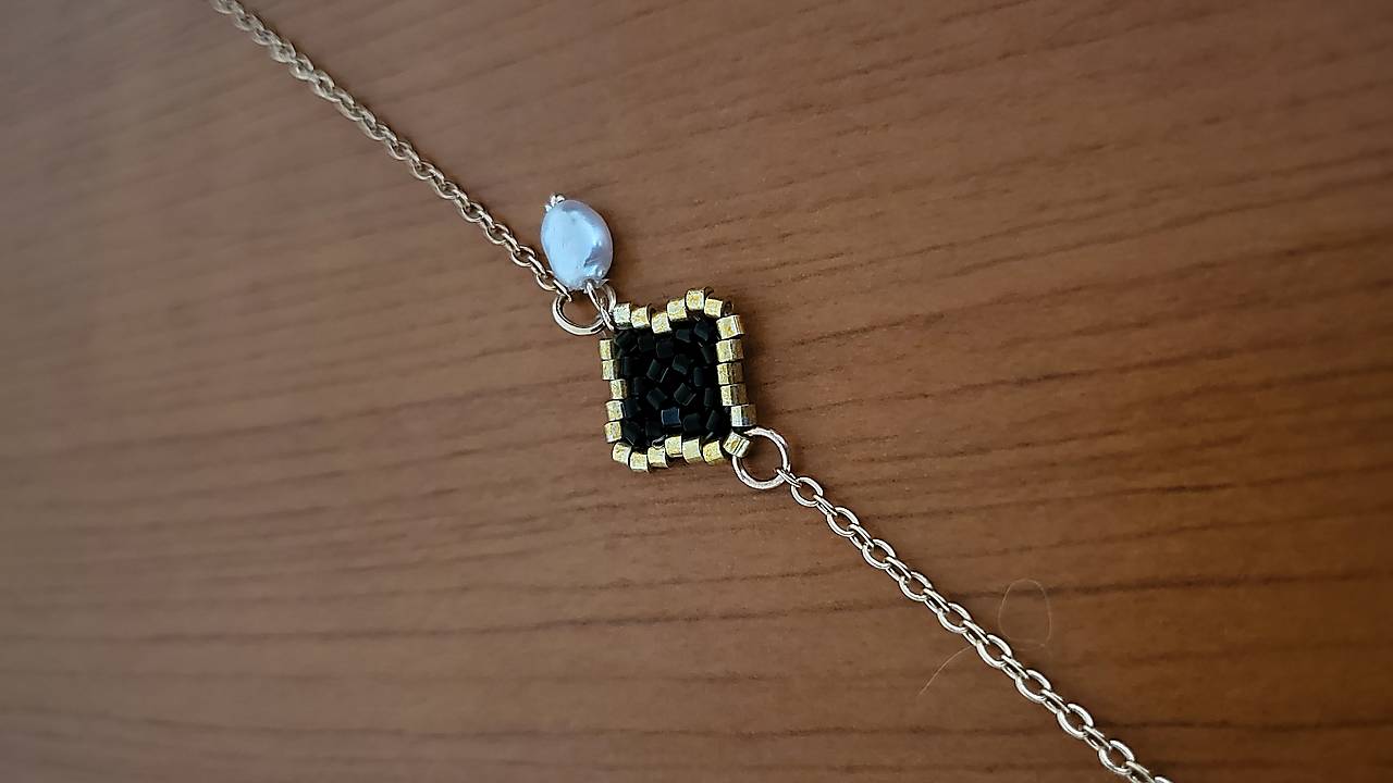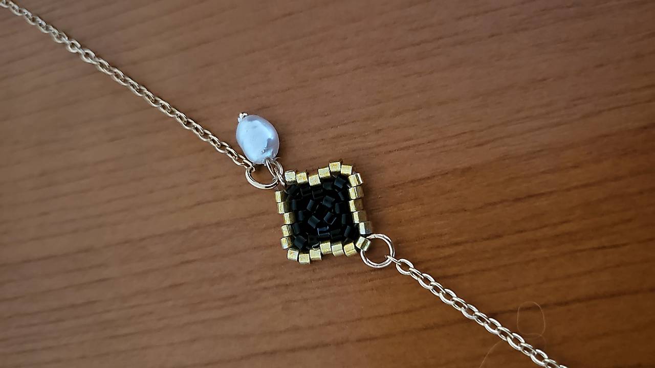Náramok pre šťastie. Ručne šitý štvorlístok, z mini korálok, na silóne. + mini perla. Je pripevnený na bižutérnej retiazke zlatej farby. Dĺžka cca. 21 cm, veľkosť 4lístka cca. 1,5 cm Vhodné na každodenné nosenie. Posielam po prevode na účet, s podacím lístkom, možnosť sledovanie zásielky. Prípadne osobný odber. Poštovné a balné v cene. Prosím písať email na sms neodpovedám.