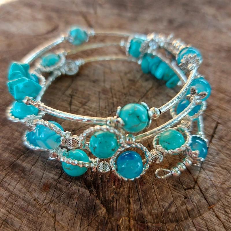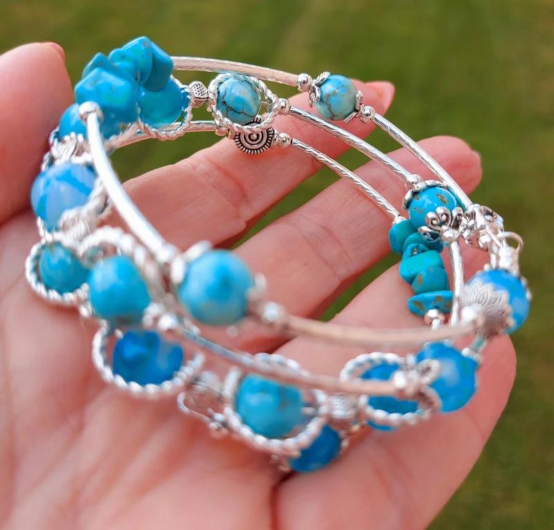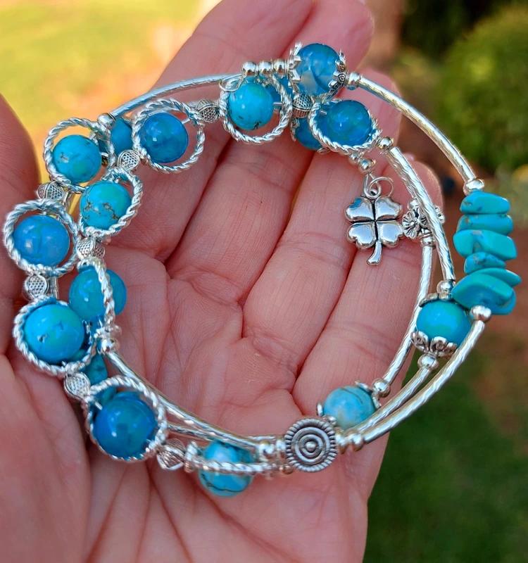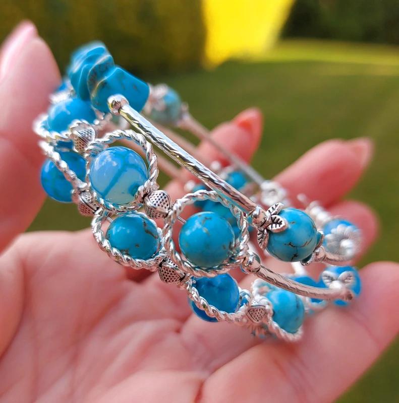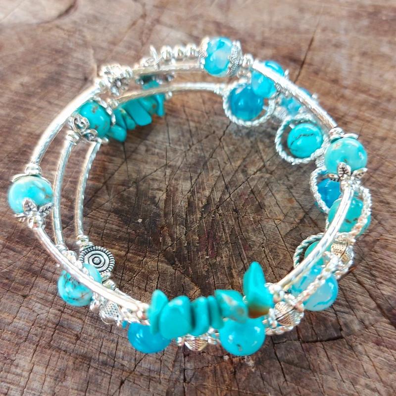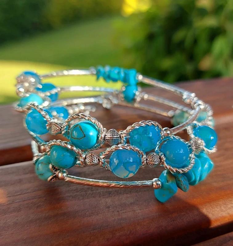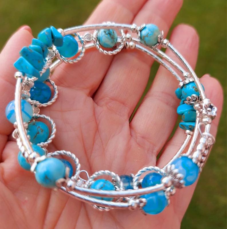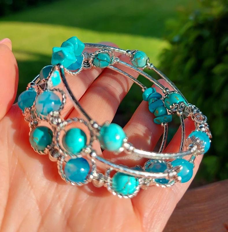 Tento ručne robený náramok je navlečený na pružnom nekonečnom drôte, takže sa krásne obtočí okolo ruky bez zbytočného zapínania – jednoducho šup a ideš! 💫