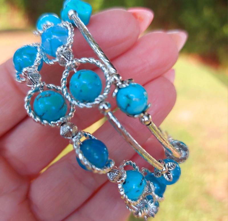Je z kombinácie modrého achátu a tyrkenitu, takže to nie je len krásny doplnok, ale aj energetická podpora pre tvoje emócie, myšlienky aj náladu.