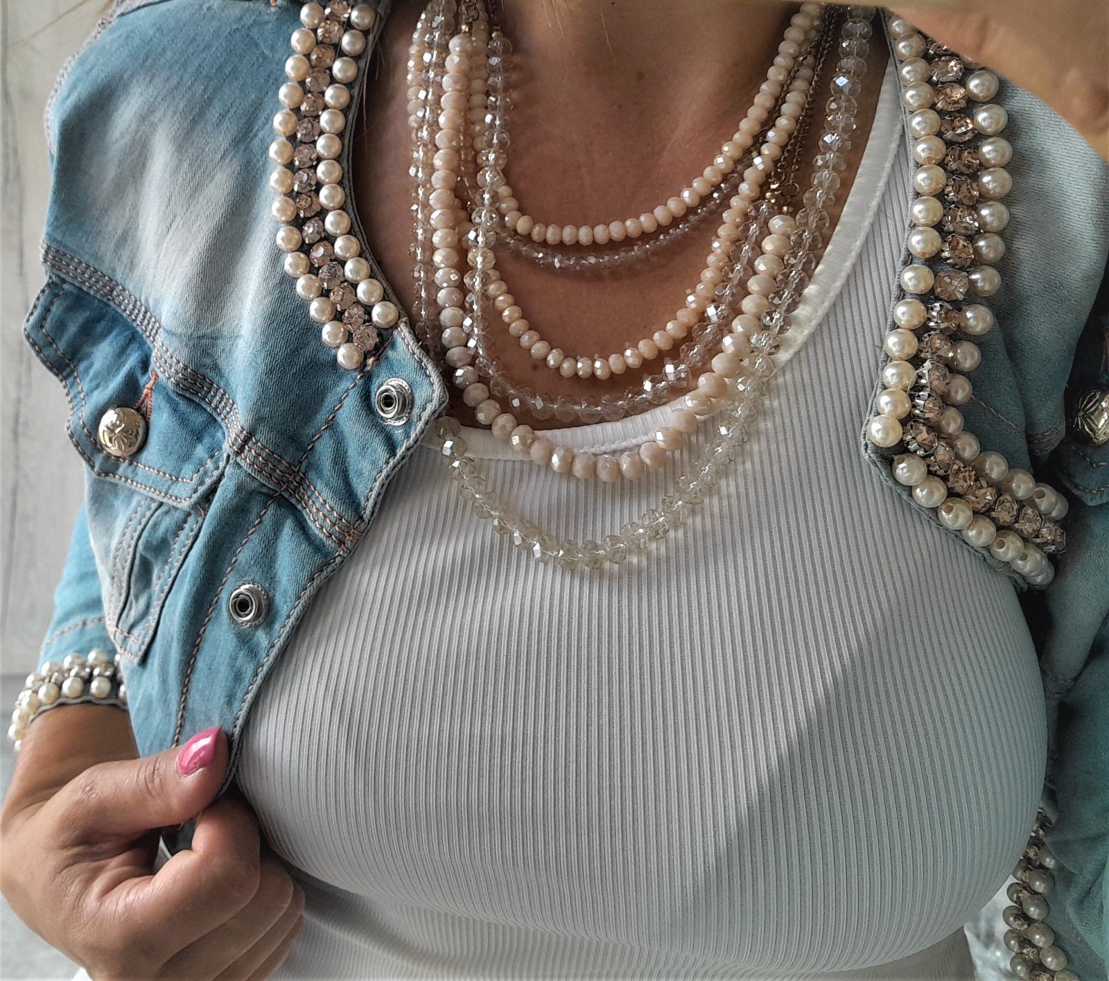 nevymieňam!!veľmi krásny viac radový náhrdelník,so sklenenými korálkami,krásne sa trbliecu,vo farbe čírej a béžovej,dĺžka náhrdelníka 48cm..zapína sa na jeden uzáver..kuk aj na iné moje inzeráty