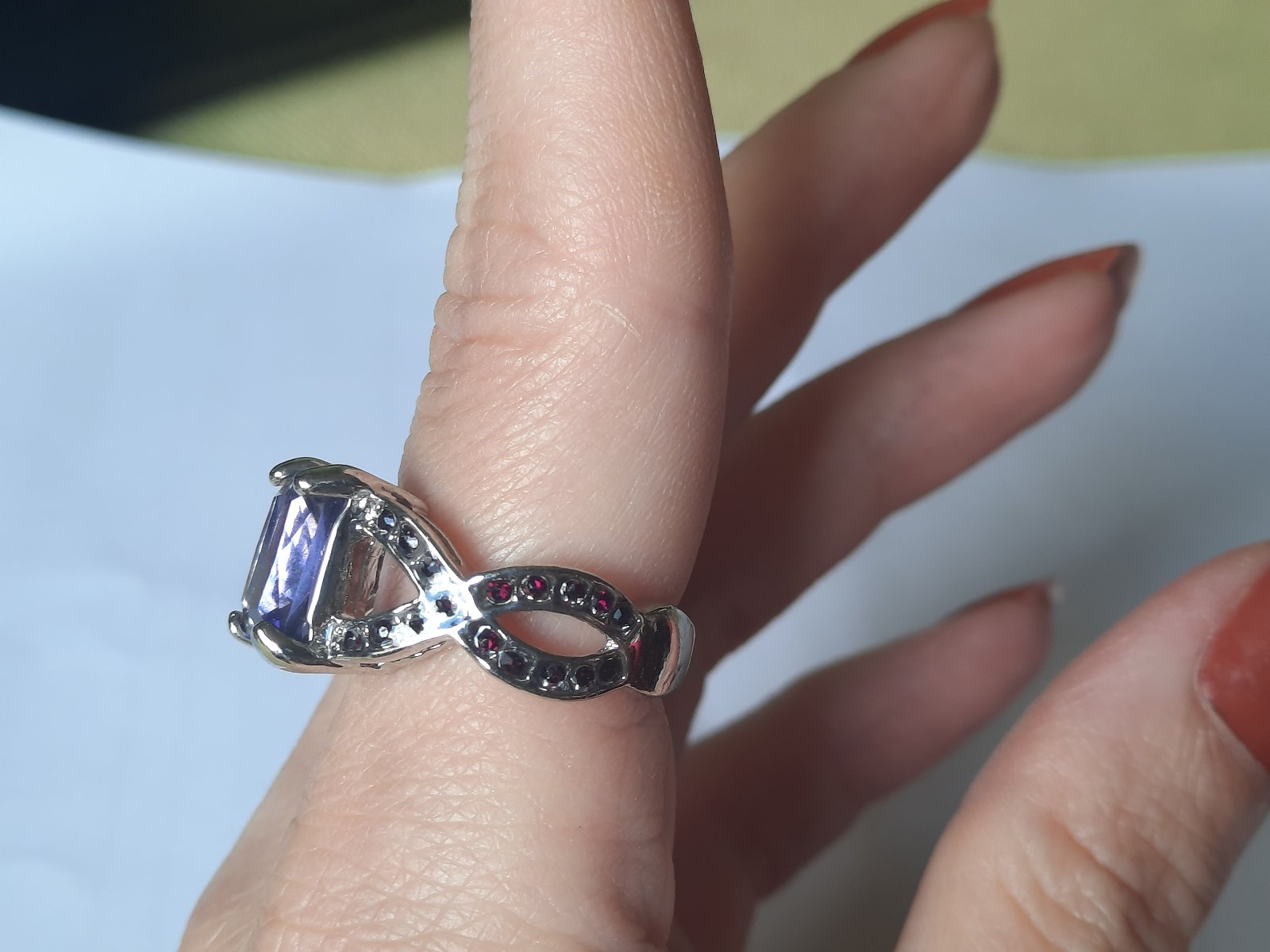 1. Prepletaný prsteň s kamienkami a s bledofialovým falošným diamantom uprostred, veľkosť S, 4,50€