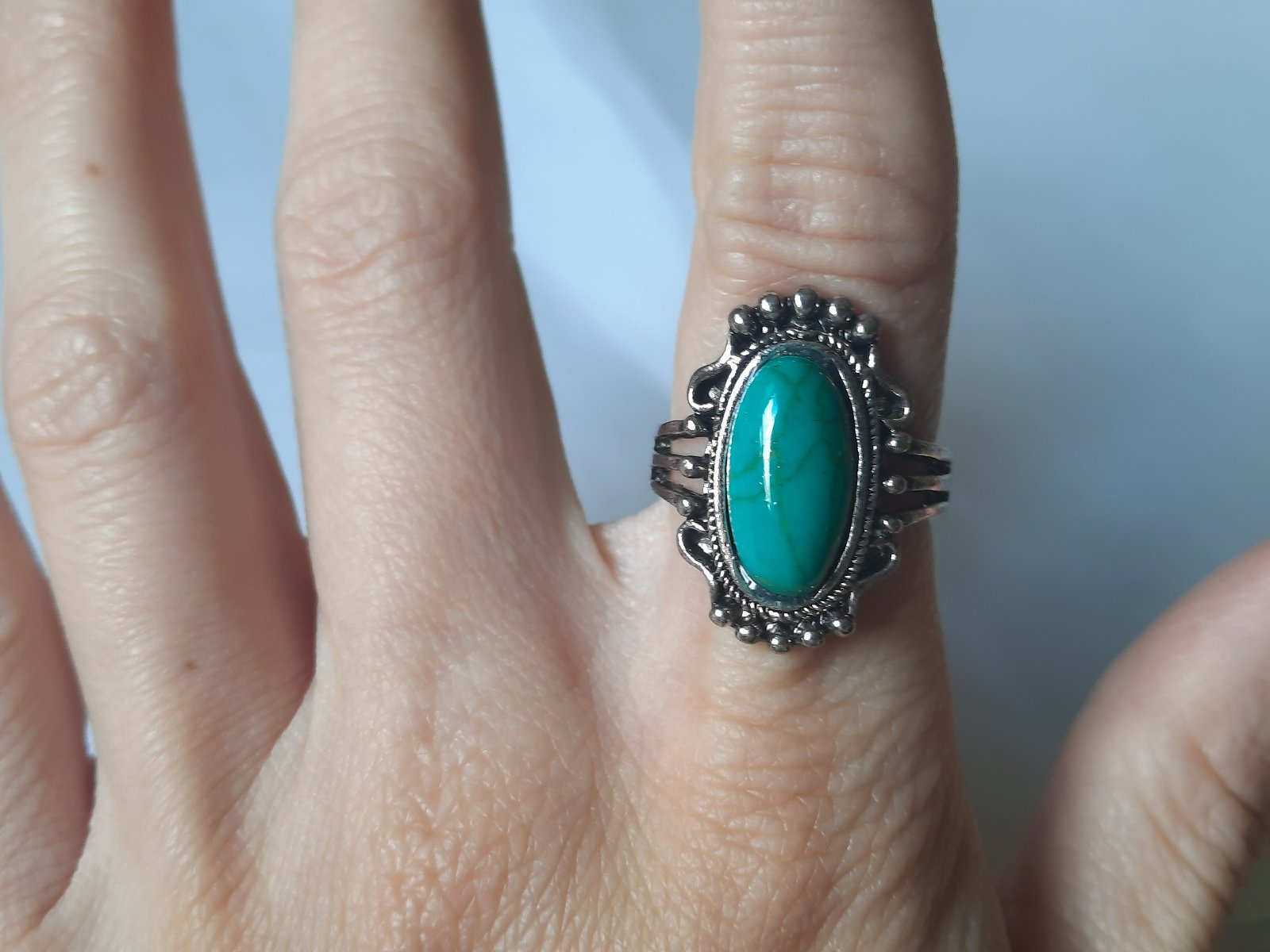 2. Imitácia vintage prsteňa s tyrkysovým stredom, veľkosť S, 6€