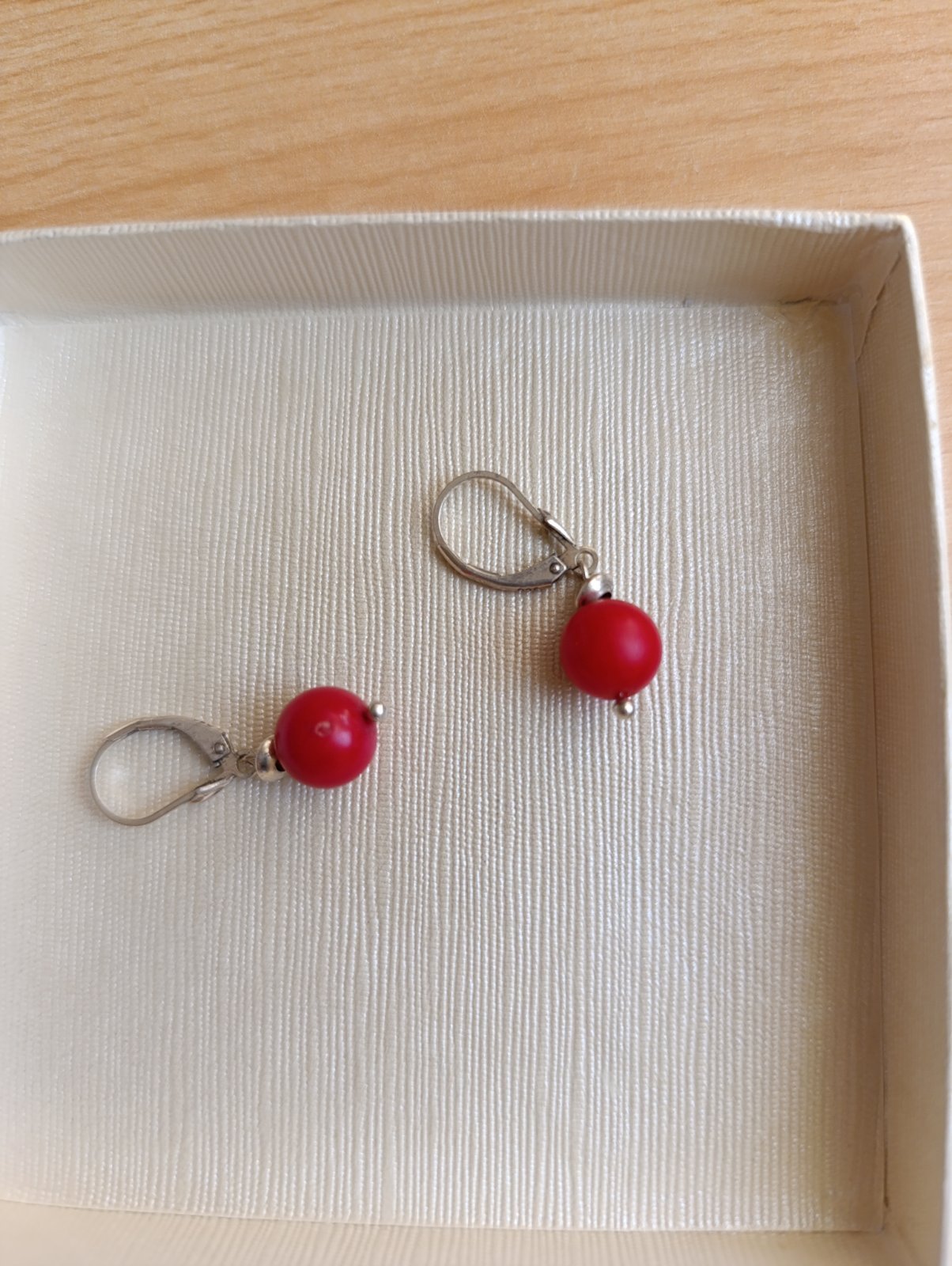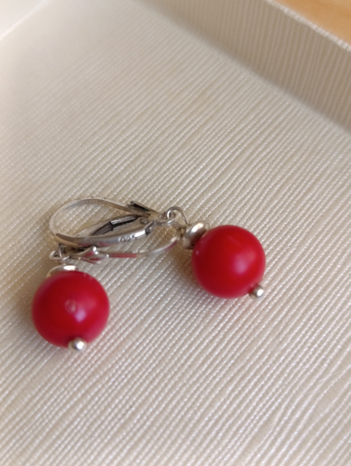 Koralové náušnice so striebornými uzávermi,dĺžka na foto,na jednom korale malý vryp,tak som ich už kúpila v predajni Opál v Košiciach