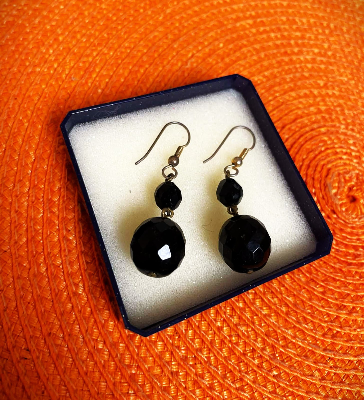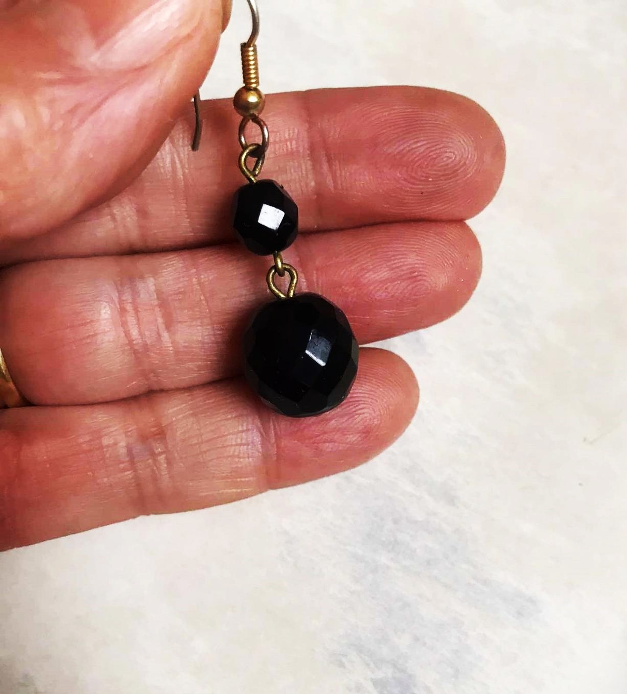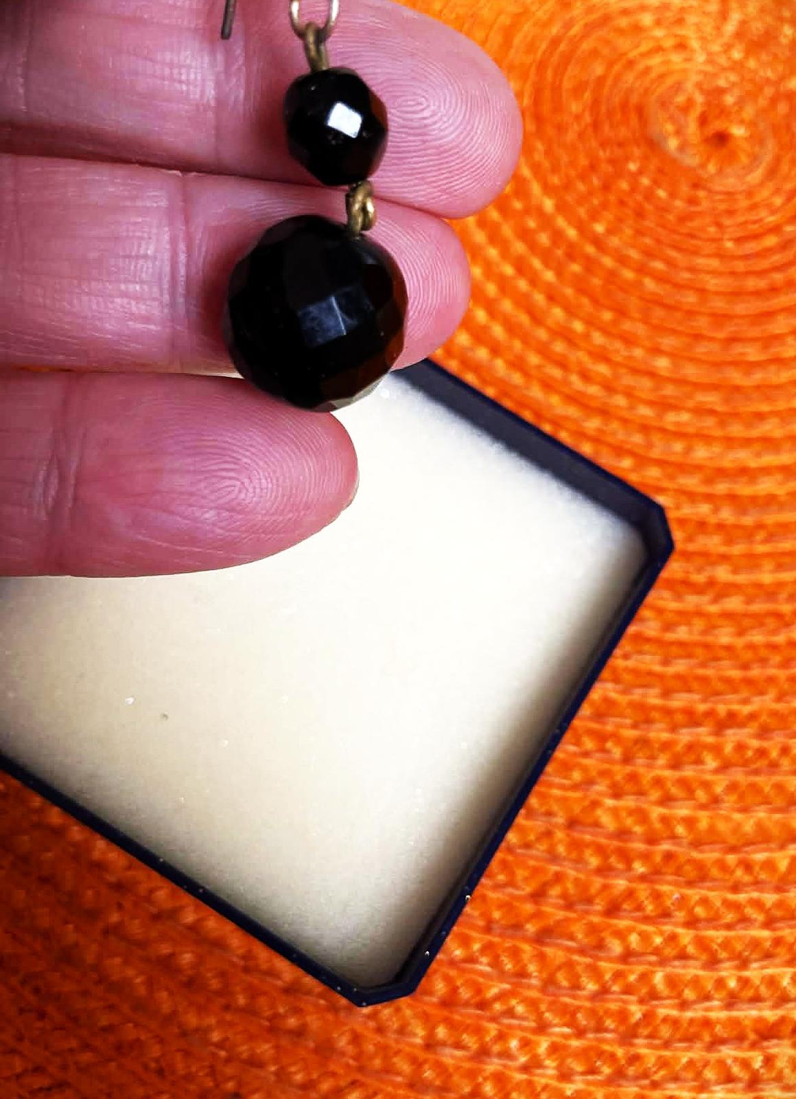 visiace (háčikové) náušnice s fazetovanými brúsenými korálkami, ktoré krásne lámu svetlo,dlžka celkom = 5 cm, dlžka guličiek = 3 cm