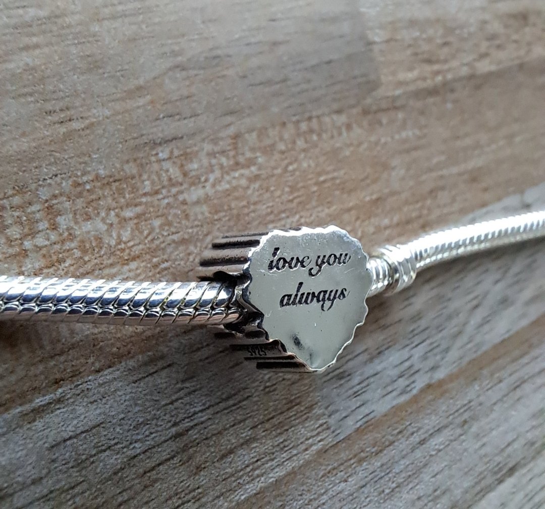 Krásny prívesok korálka v tvare nádherného srdca. Na zadnej strane je nápis ,,love you always". 💜🤍