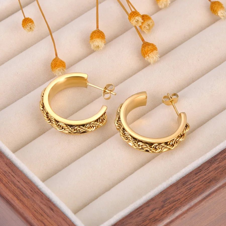 materiál: pozlátená chirurgická oceľ, priemer náušníc: 25mm, šírka náušníc: 6mm