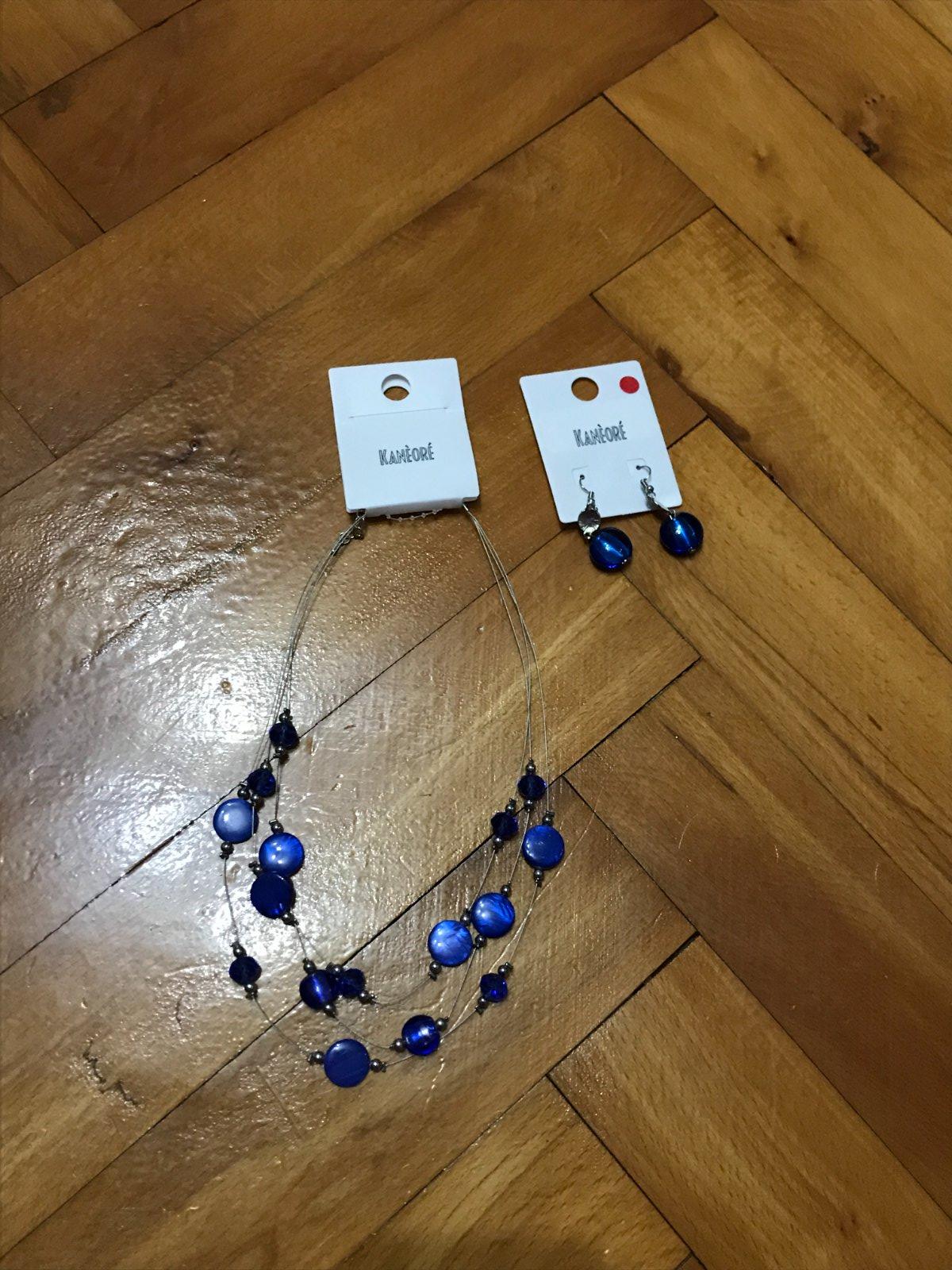 elegantná sada náhrdelníka a náušníc v modrej farbe