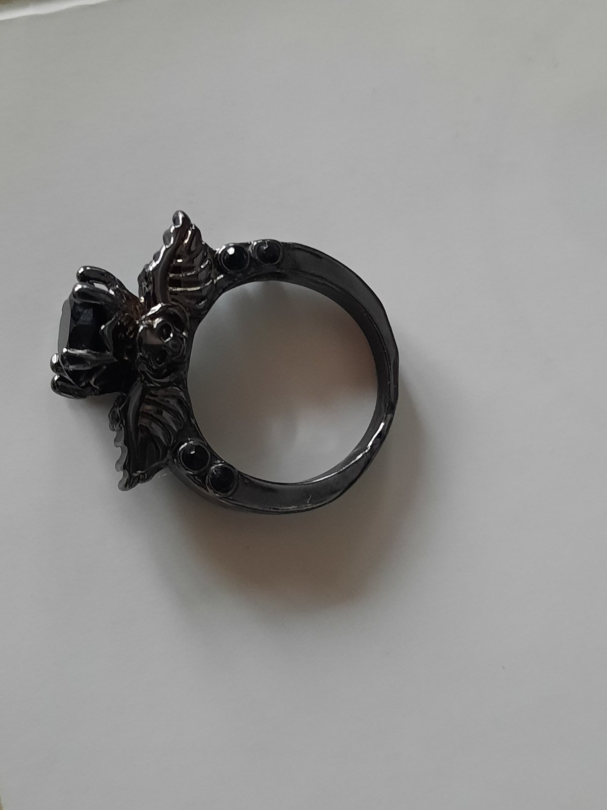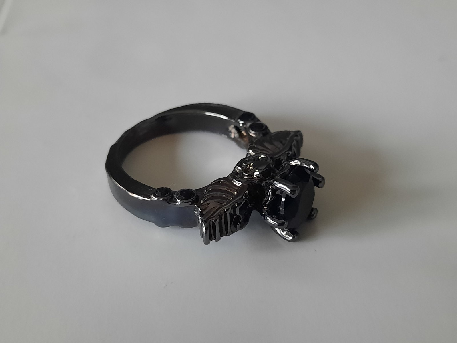 2. čierny prsteň s falošným čiernym diamantom v strede, veľkosť XS-S (7€)