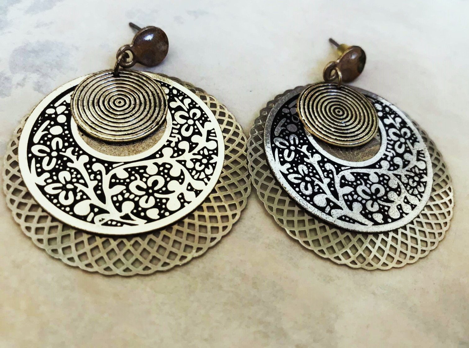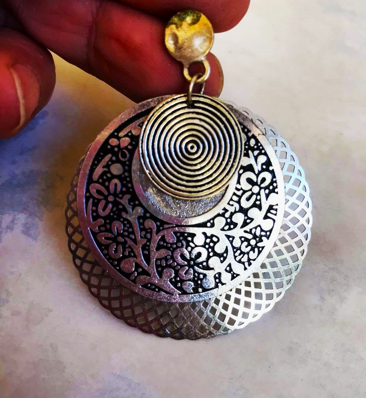 filigránové vrstvené krásne náušnice z mexického striebra,s etnickým/ boho motívom,priemer najväčšieho kolieska = 5 cm