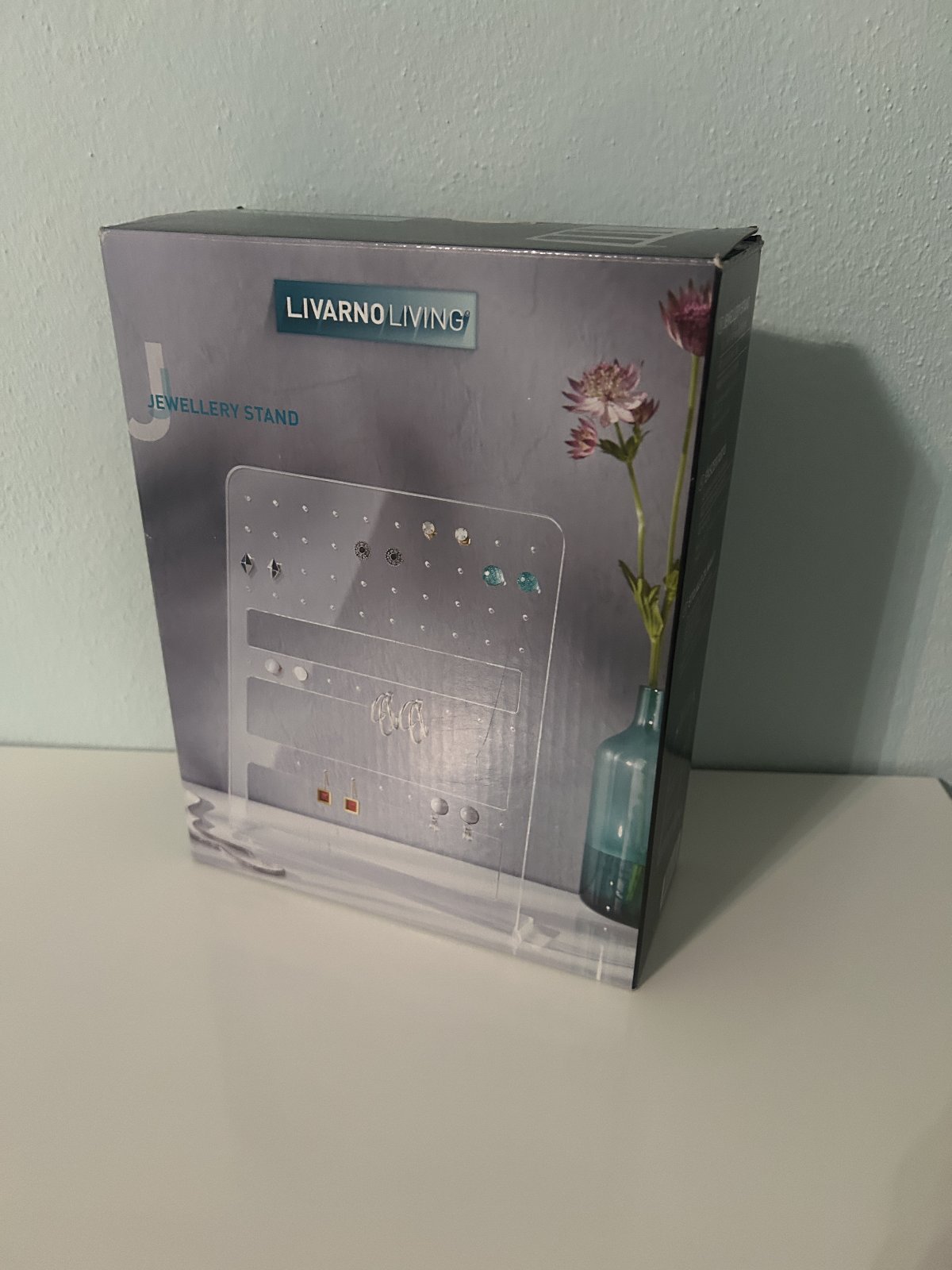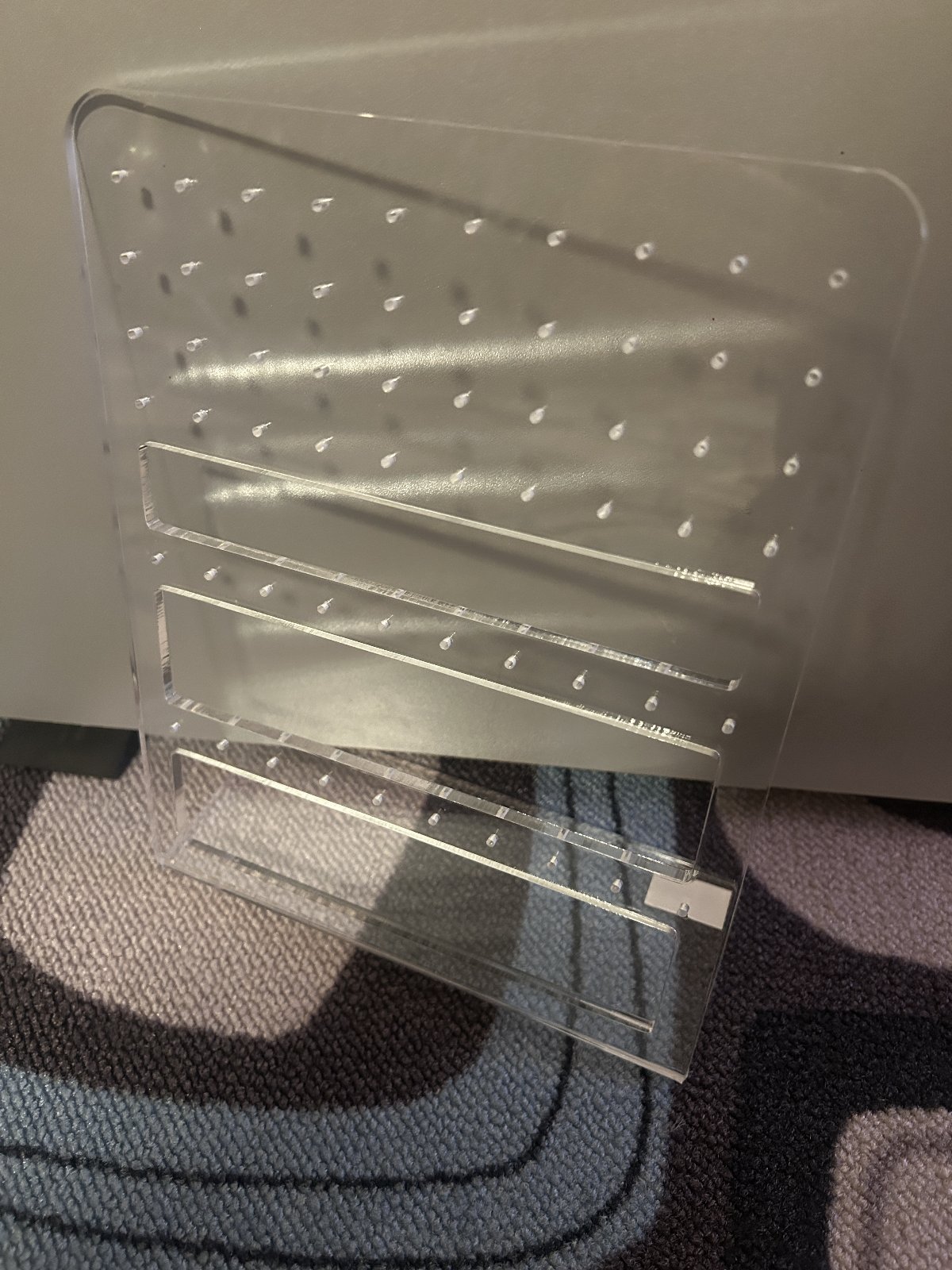 z akrylového skla - na 60 naušníc. Rozmery: 18x 22, 6 x6, 7 cm