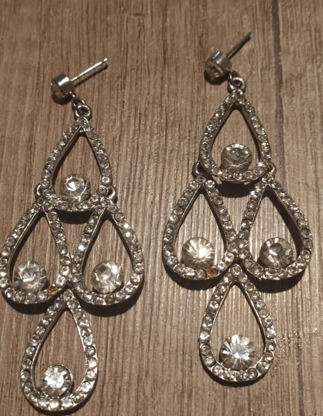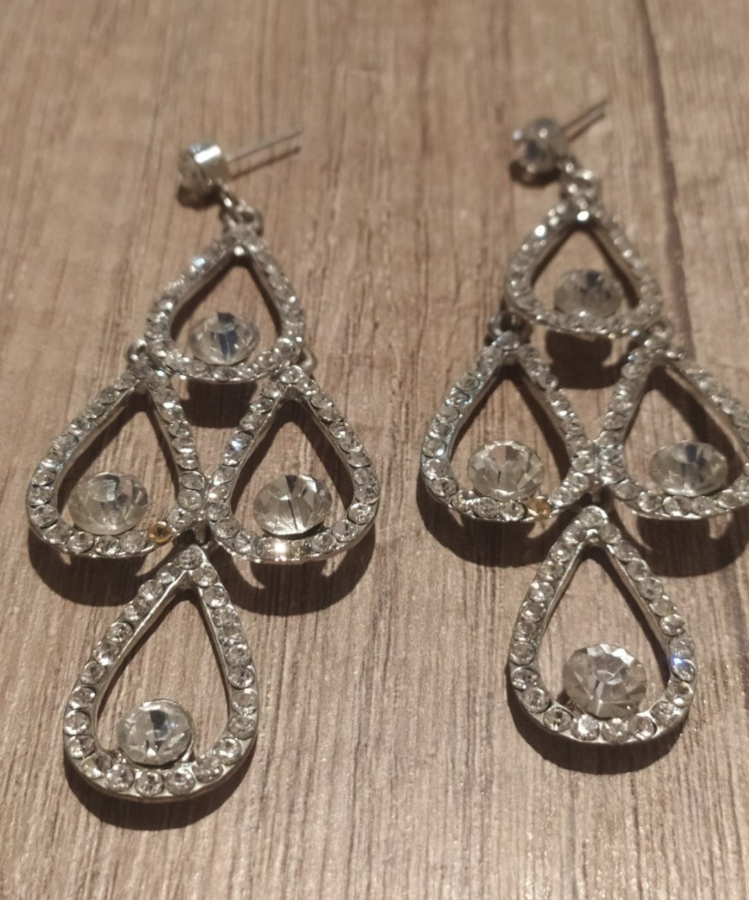 Nádherné visiace náušnice,vhodné na príležitosť,dl 8cm.na každej chýba jeden drobnucky zirkónom,pri nosení nevidiet,
