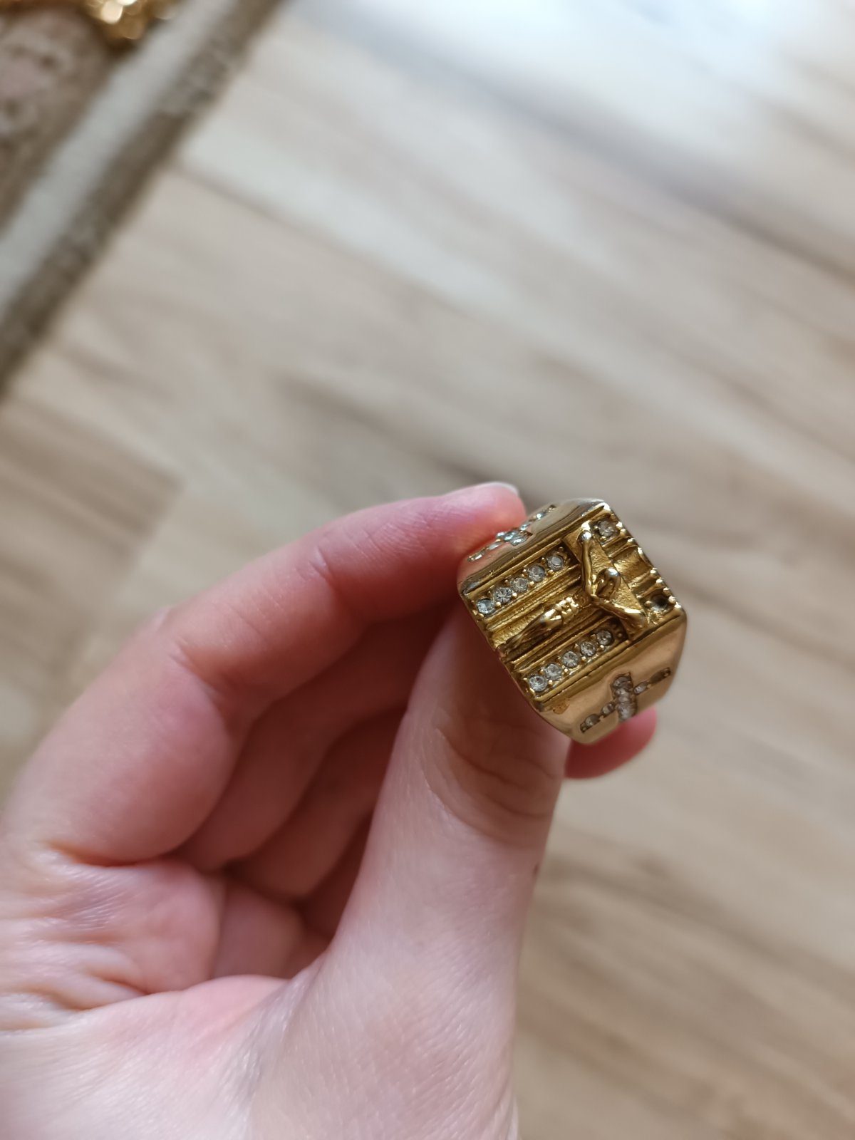 Prsteň, chirurgická oceľ, veľkosť 11, 2 kamienky vypadnuté.