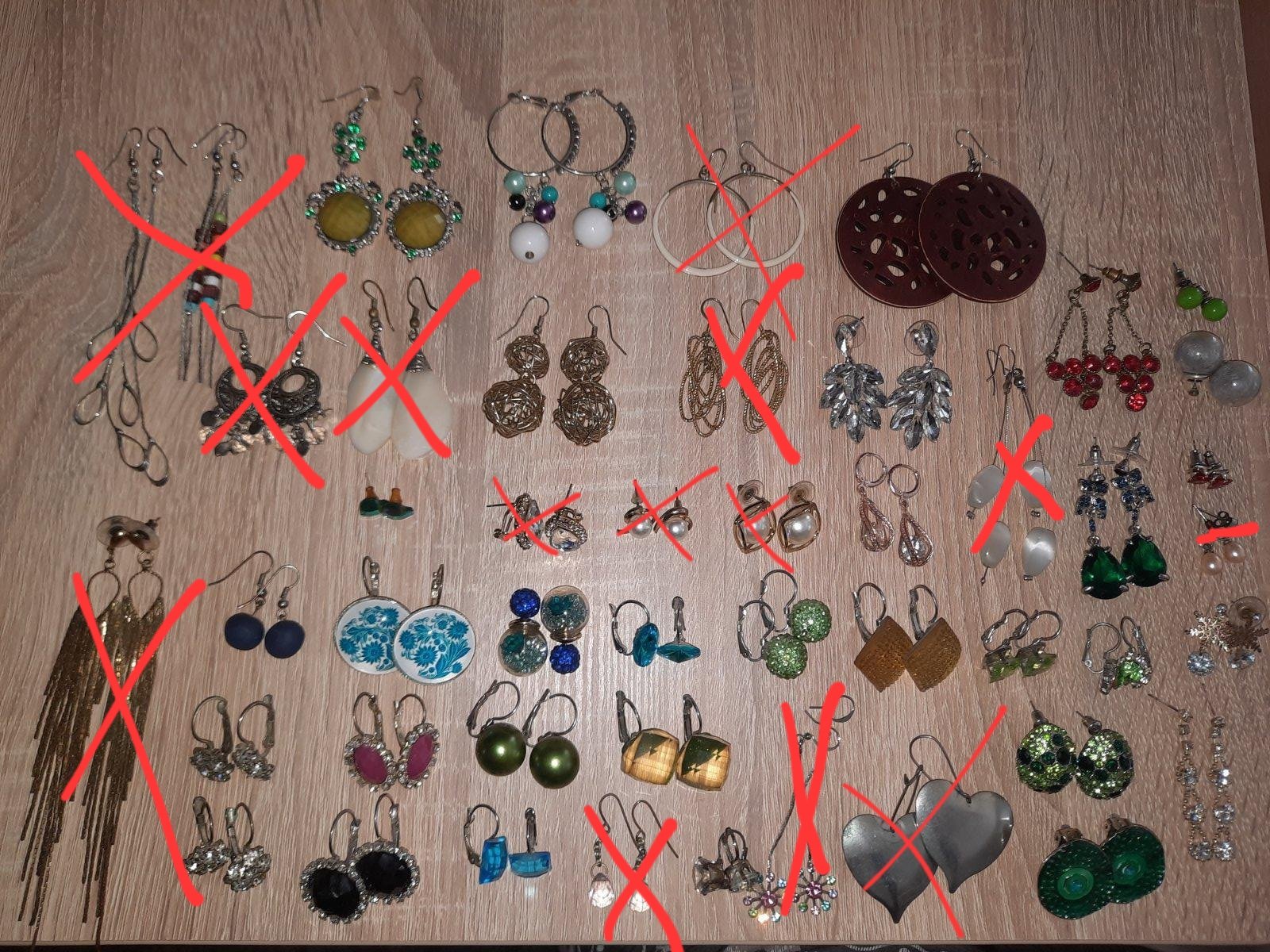 Všetko spolu alebo aj po kuse sa dá vybrať (0.50e/par). Niektoré nosené viac,niektoré max 1x.