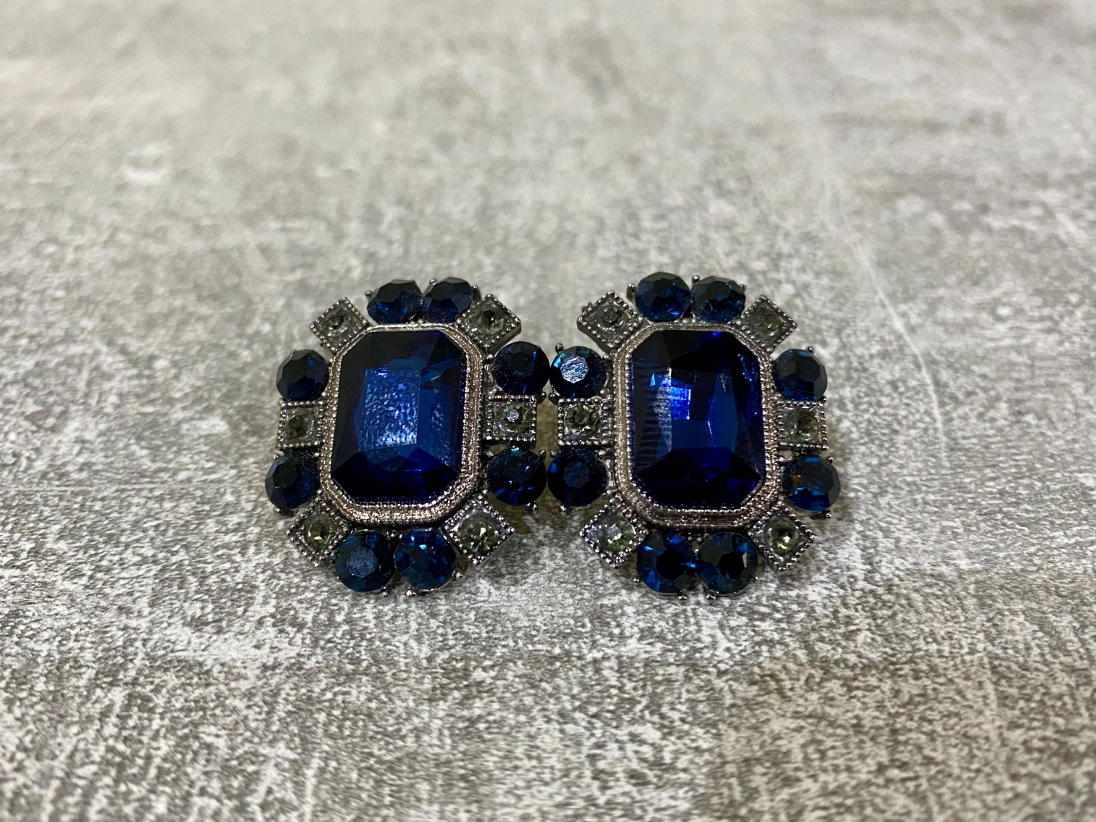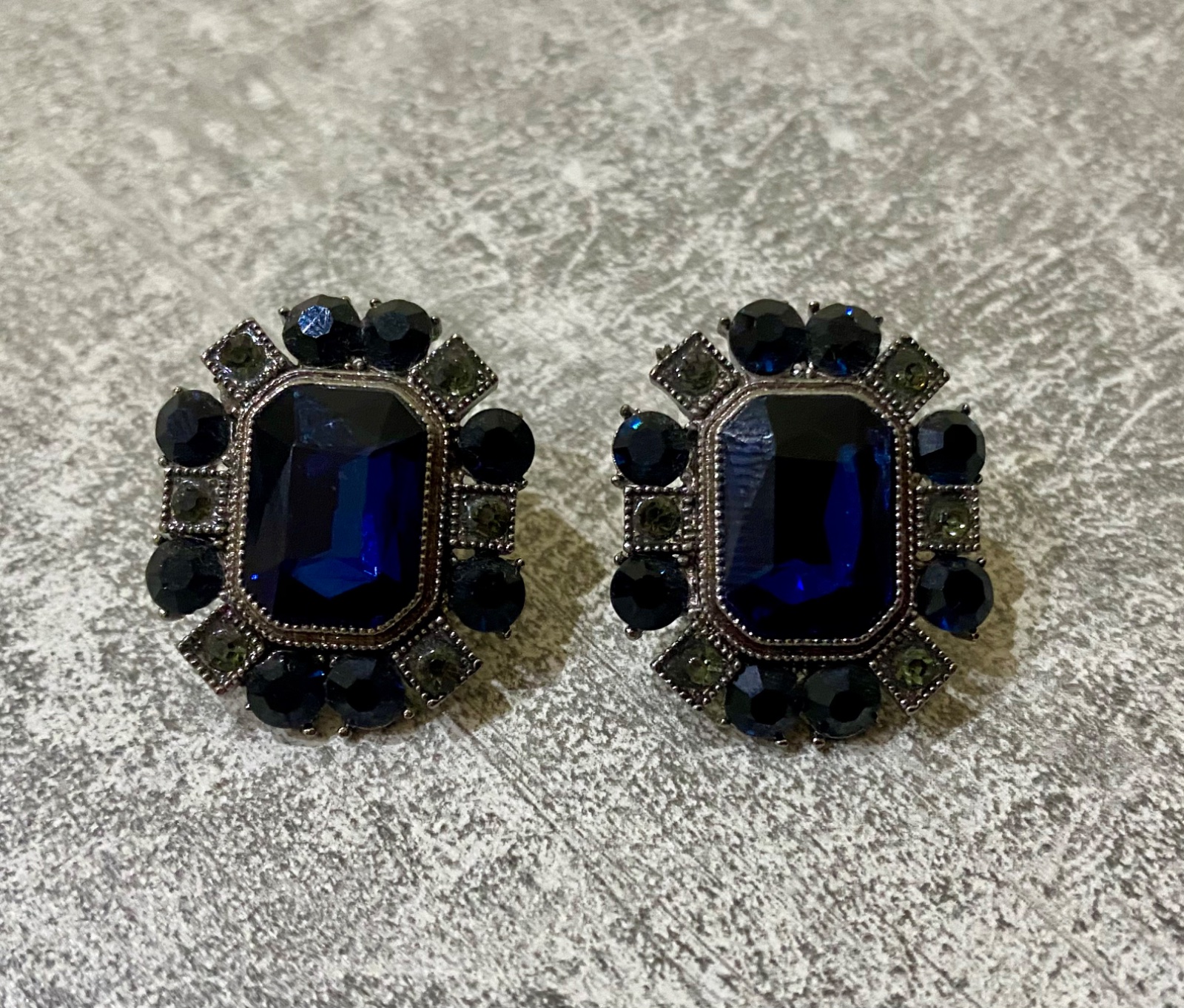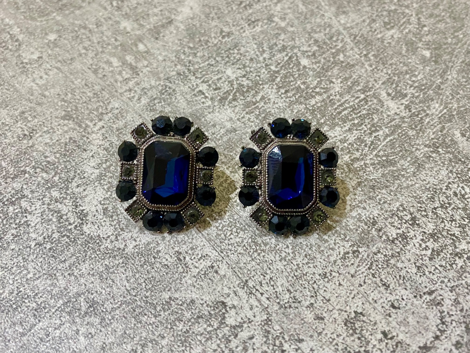 Dámske elegantné náušnice s výraznými tmavomodrými lesklými kamienkami.