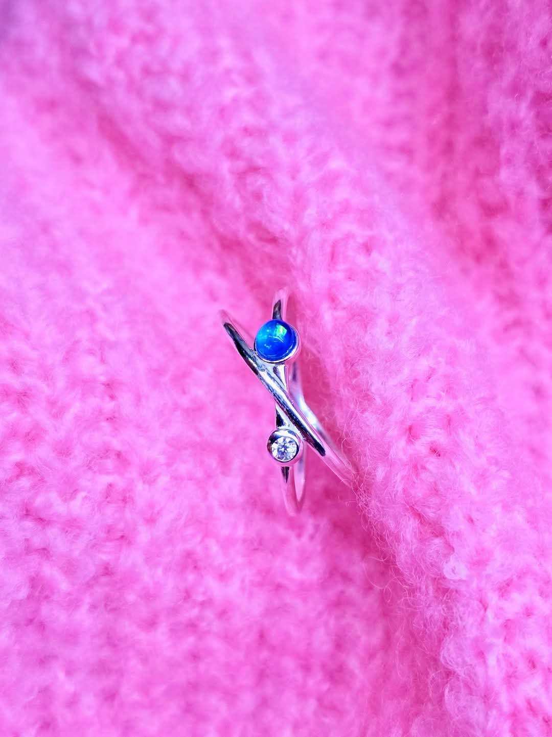 Strieborný prsteň prekrížený zirkón 💎 s opálom 🩵