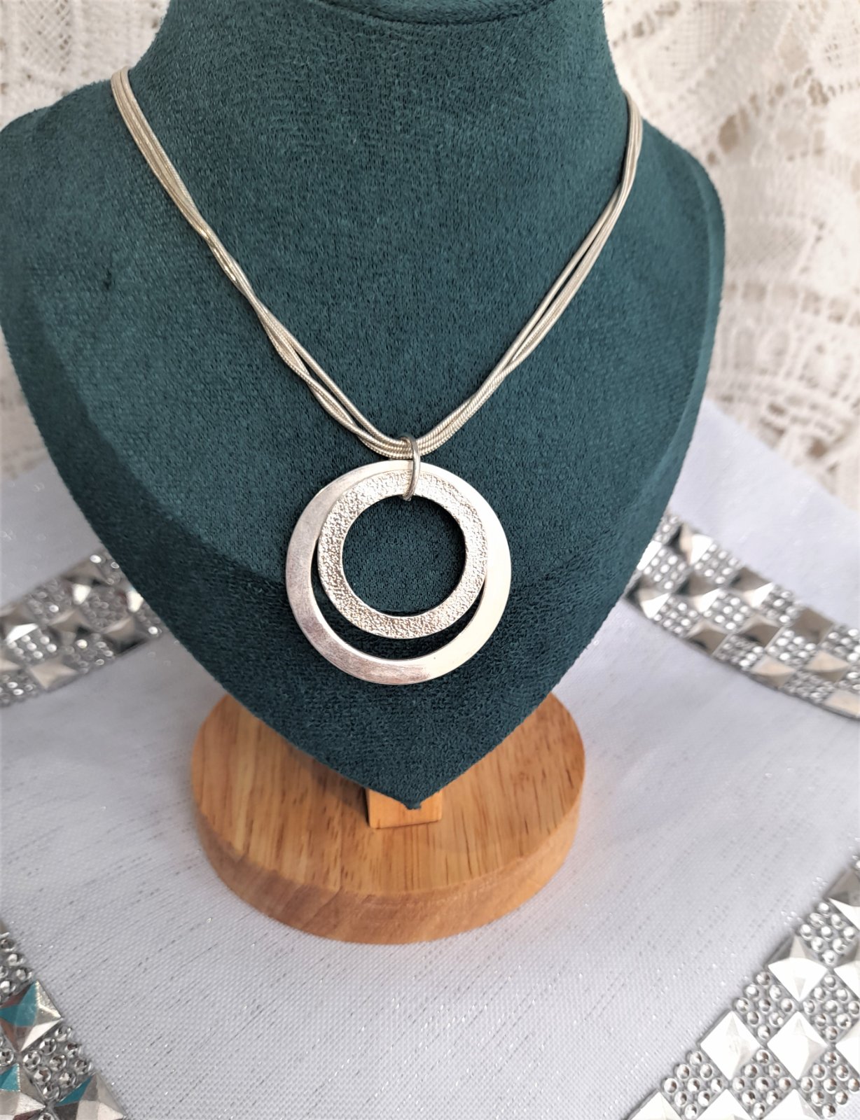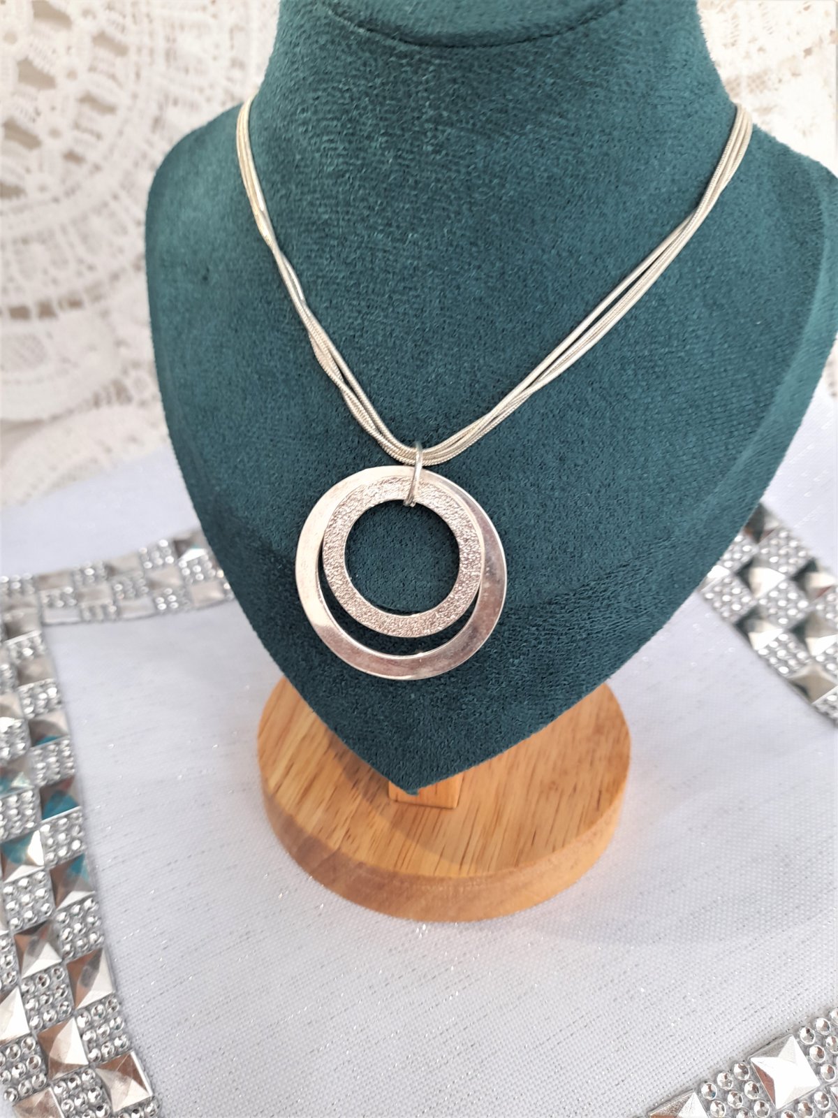 nevymieňam!!pár x na sebe,jedná sa o zliatinu striebra,nie pravé striebro,dĺžka retiazky 45,5cm,nemá reguláciu,veľkosť prívesku 3,5cm..kuk aj na iné moje inzeráty