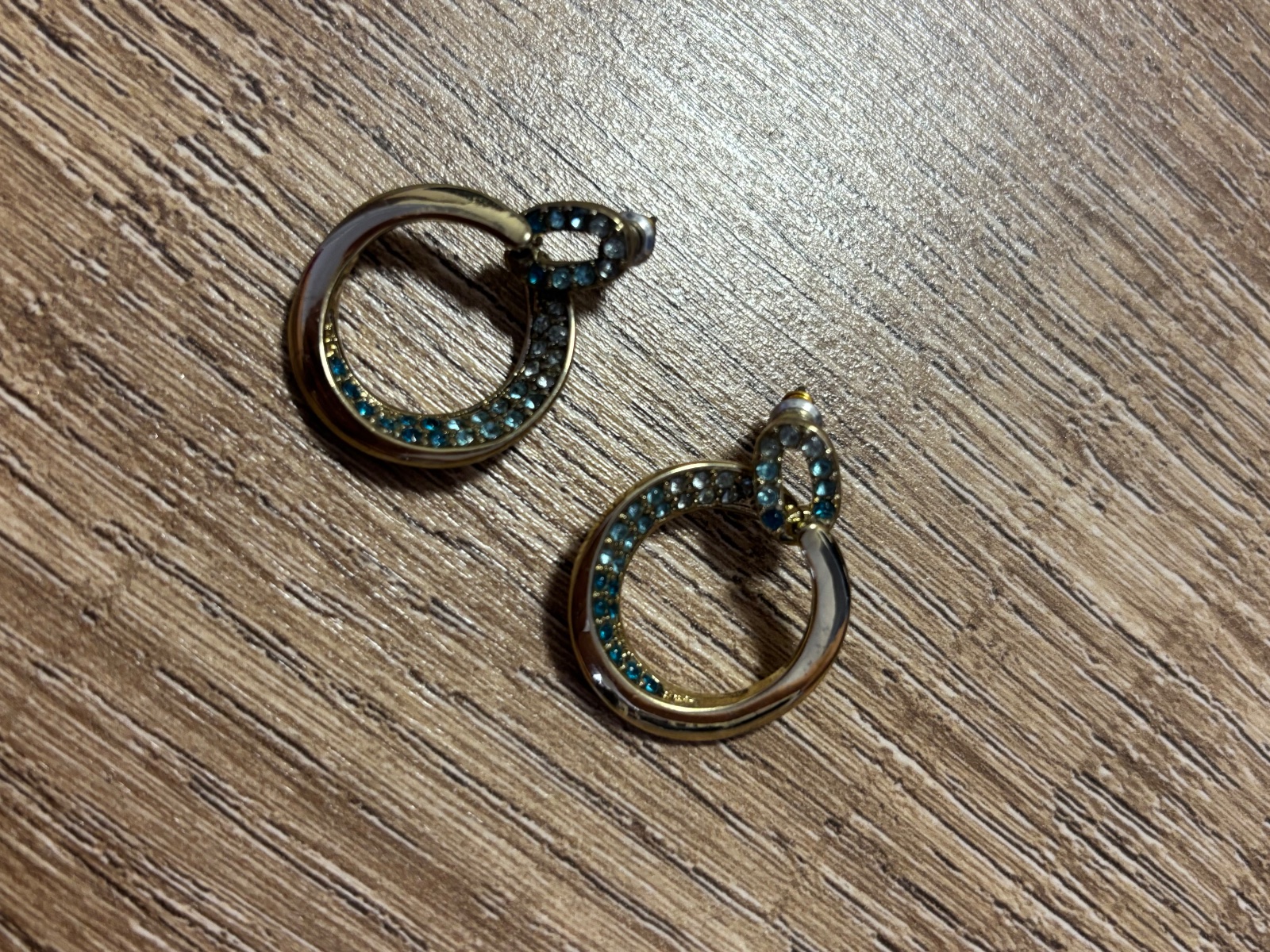 Nausnice zlatej farby s modrymi kamienkami. Nove.