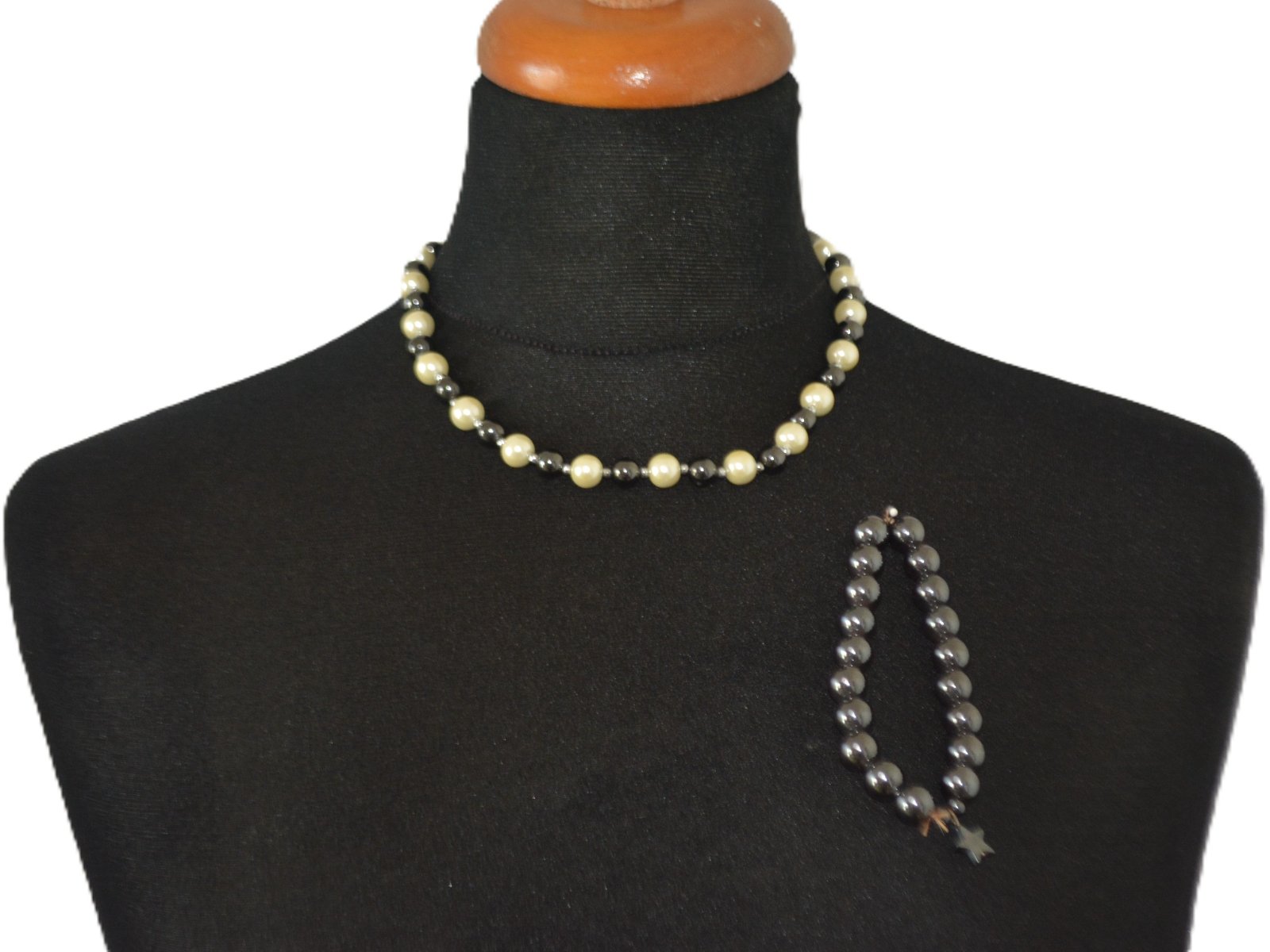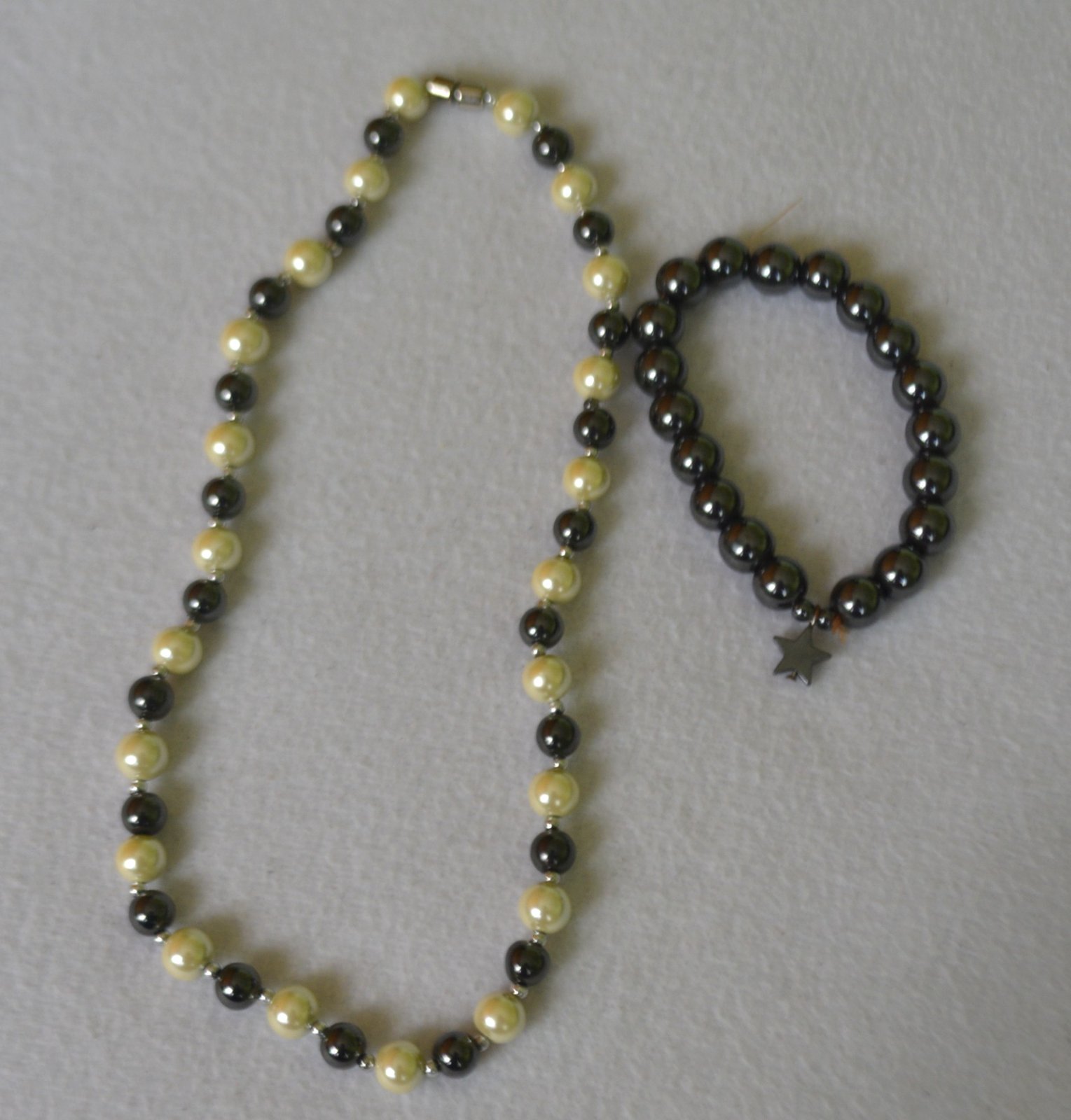 Náhrdelník má magnetické zapínanie, náramok je elastický, s malým príveskom, nasunie sa na ruku.