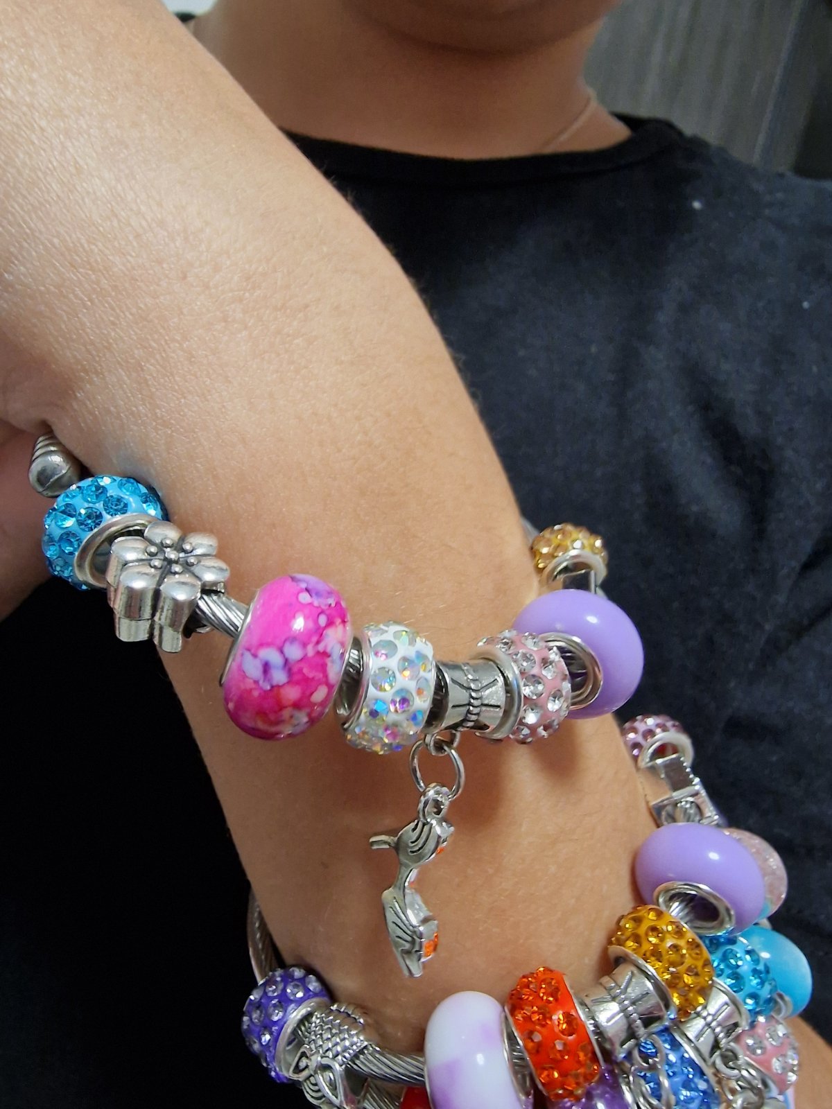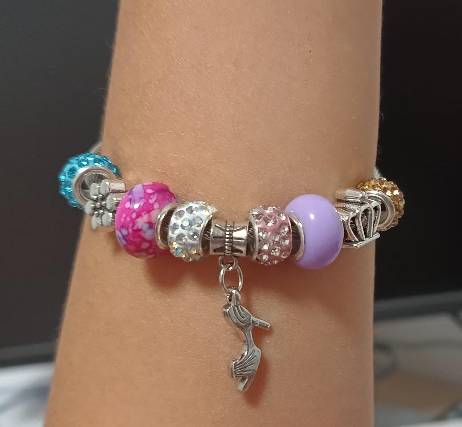 Na predaj krásne kovové náramky s koralikmi a príveskom.