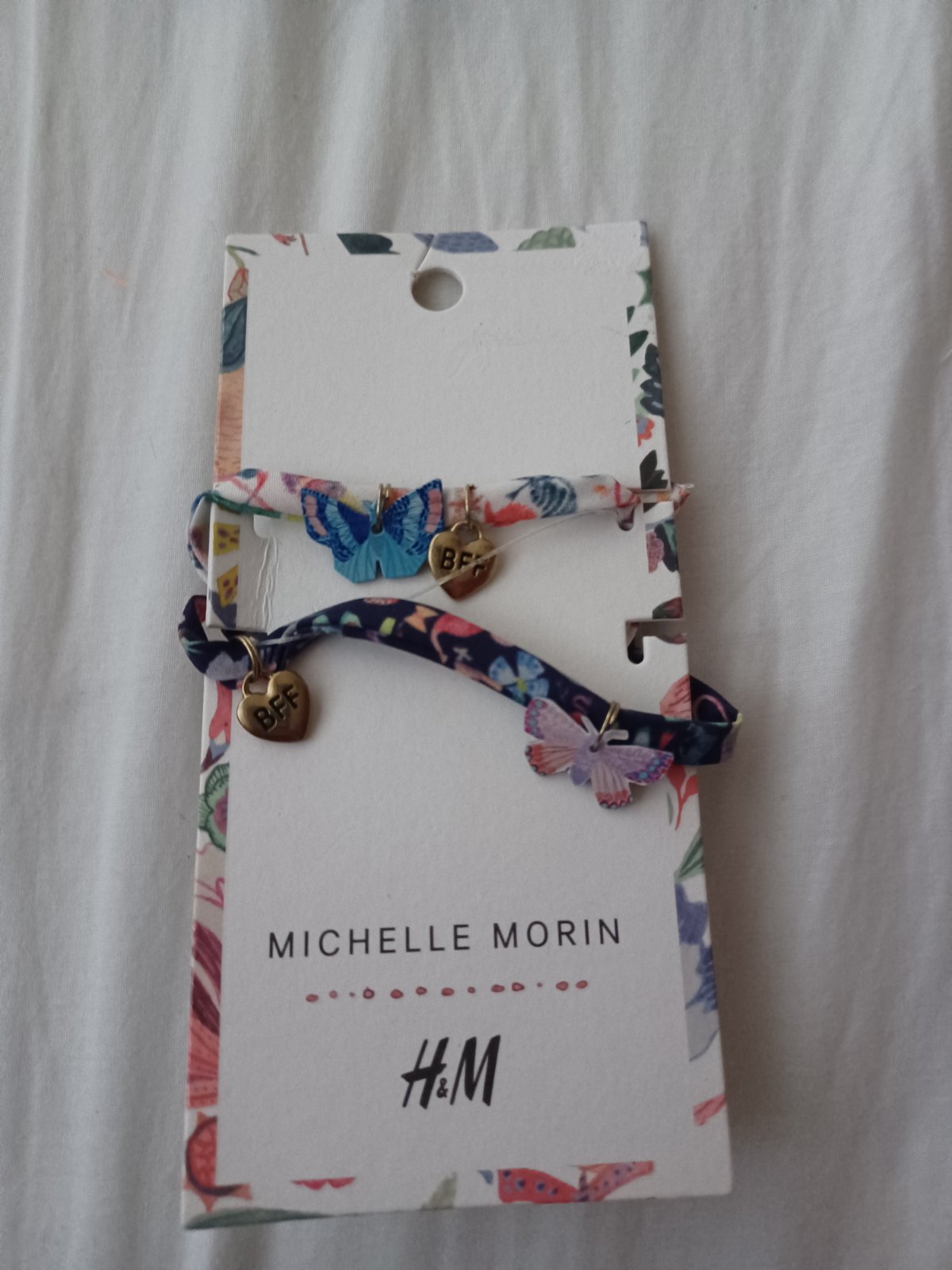 Nenosene, bez poškodenia, 2 kusy, látkové náramky s kovovými motýlikmi, cena 2,99 eur + poštovné