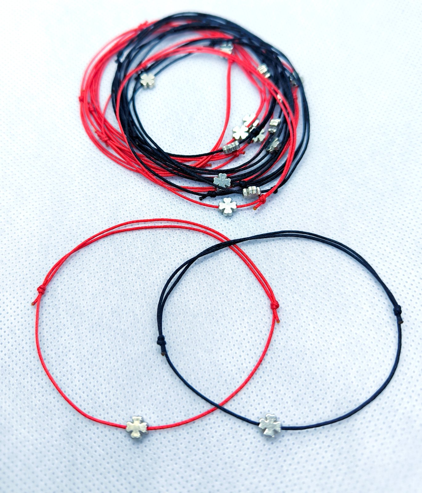 Náramky so strieborným komponentom s 925/1000 striebra. S posuvnými uzlikmi. Dajú sa vyrobiť aj s inou farebnou šnúrkou a podľa veľkosti. Pozlátené trocha drahšie za 18€ Pri odbere viac ks zľava j...