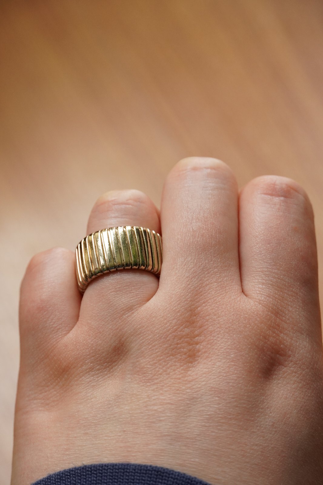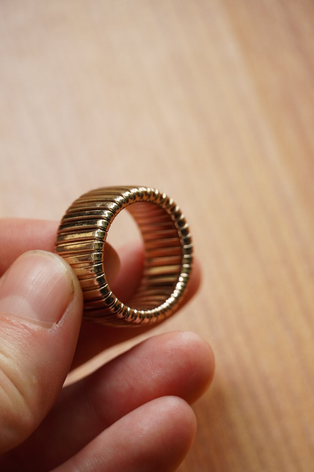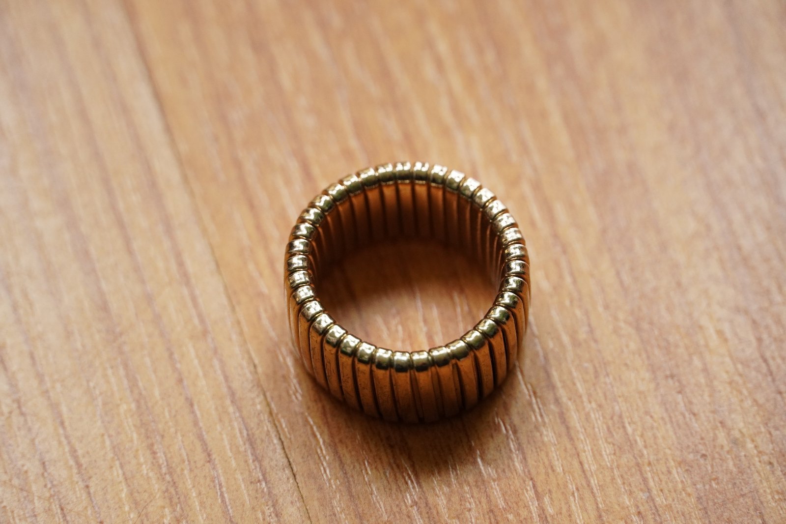 Prsteň vo svetlozlatej farbe, pri bližšom pohľade vidno mierne znaky používania. Stále však vyzerá dobre. Je mierne ohybný (pozri poslednú fotku).