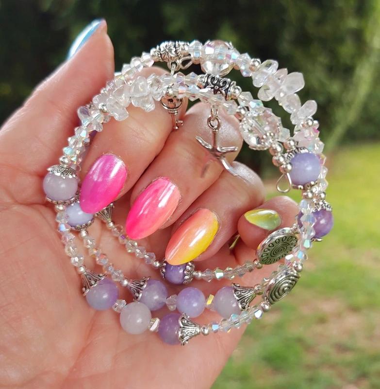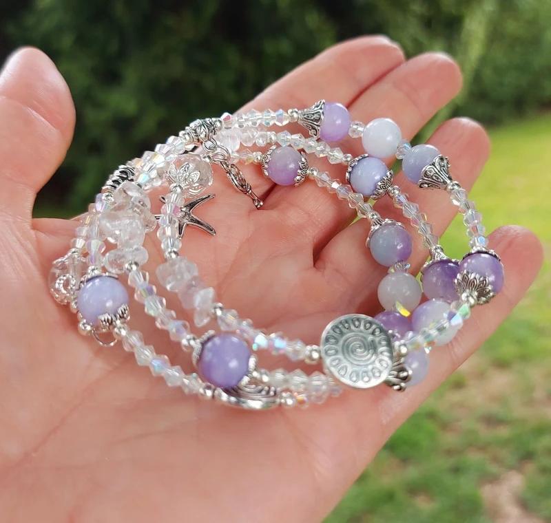 Tento náramok má dušu morskej víly a energiu magického západu slnka pri mori. Vyrobila som ho na nekonečnom drôte, takže sa krásne ovinie okolo zápästia ako nežné objatie. 💜✨