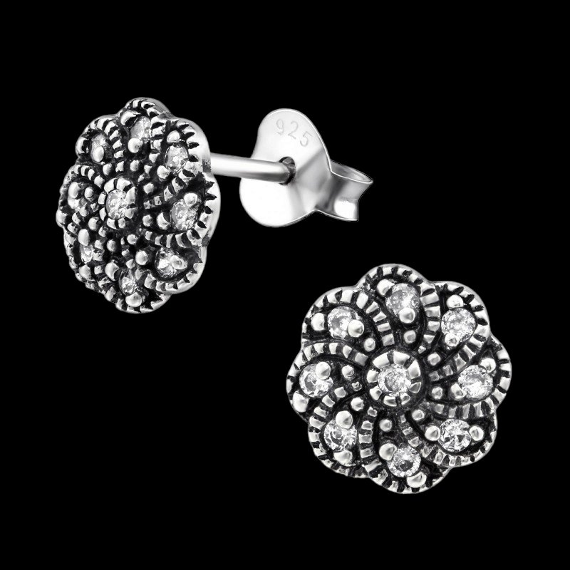 Strieborné puzetové náušnice Kvetiny vykladané 18 čírymi zirkónmi 🌸💎🤍