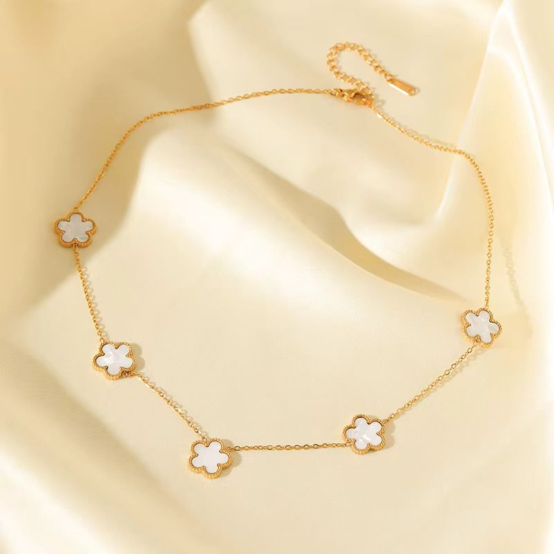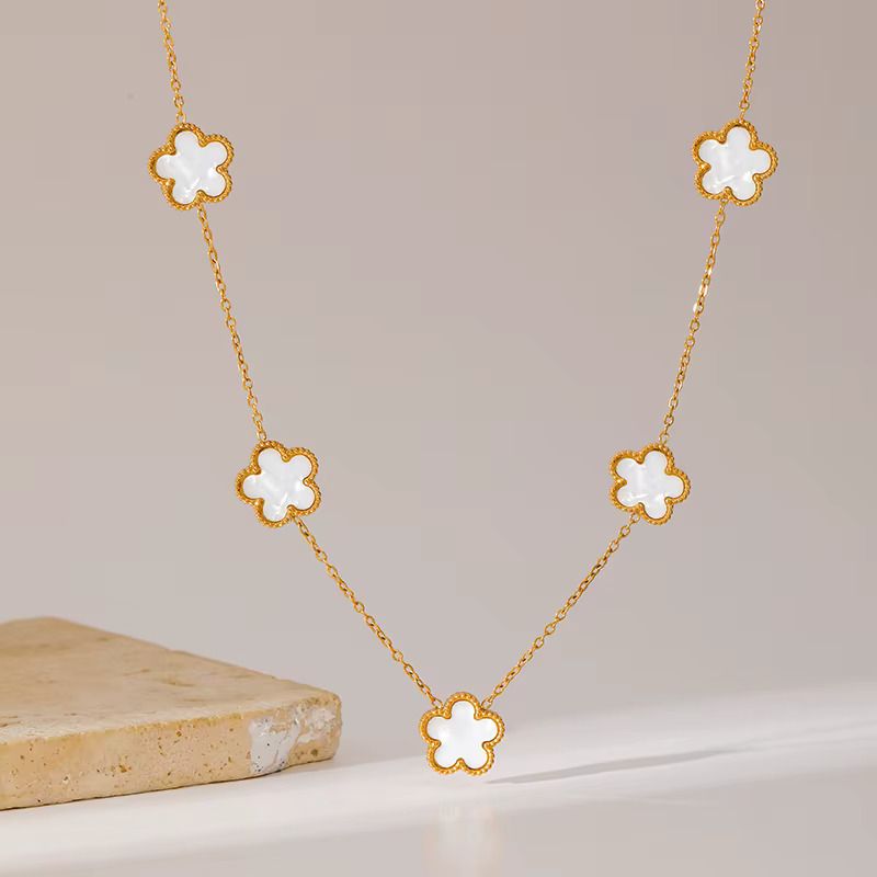 Retiazka z chirurgickej ocele 5 bielych kvietkov
