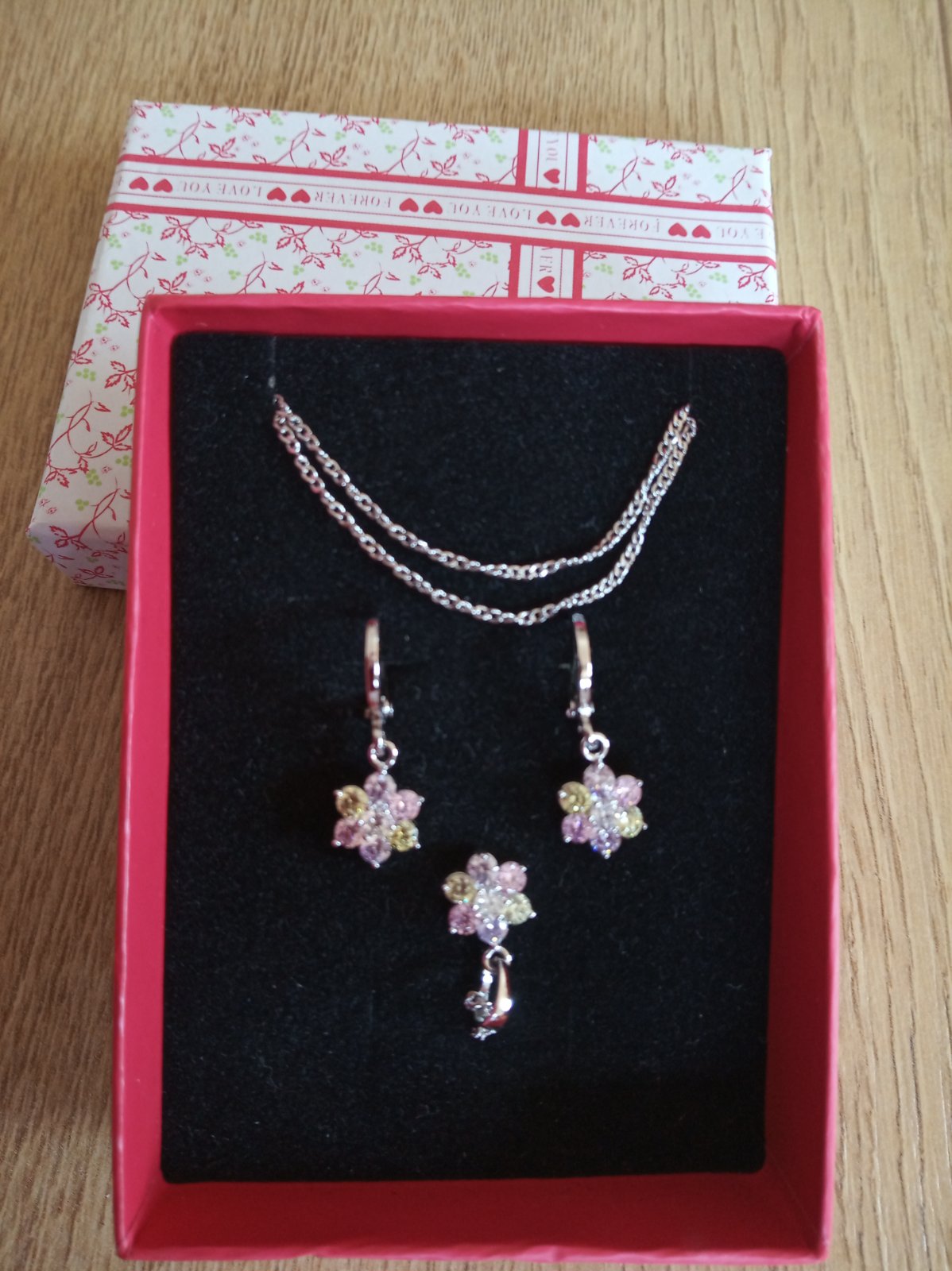 Sada bižutéria pre slečnu. Raz použitá, krásna trblietavá. Dĺžka retiazky je 44 cm.