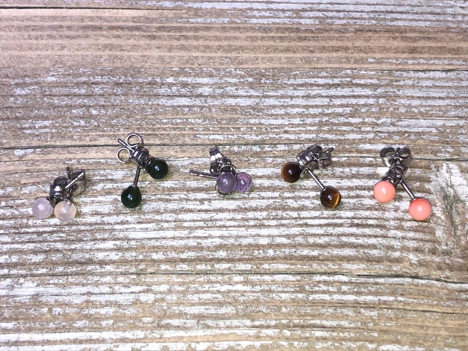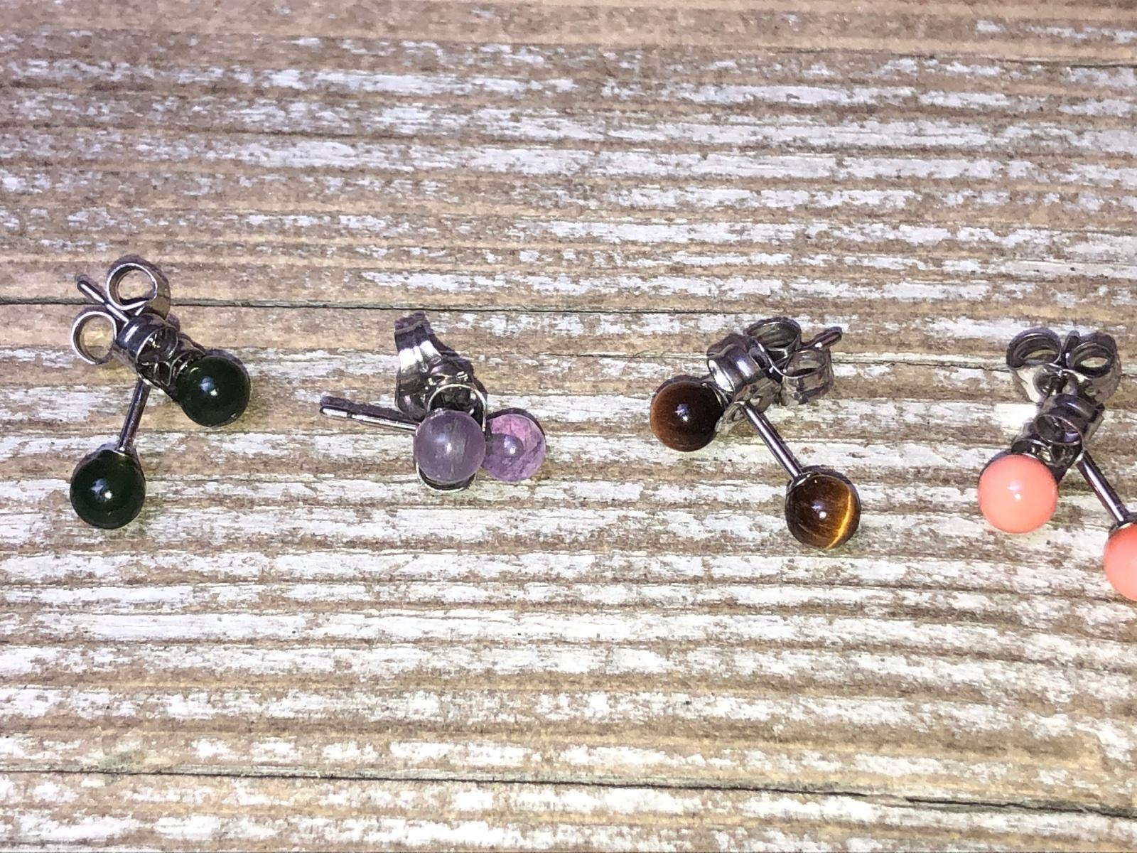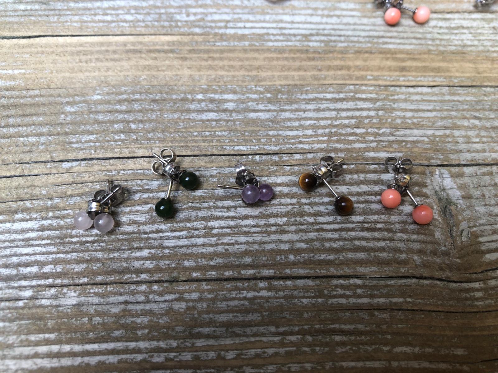 Malinké napichovacie nausnice, kameň- ruženín, tigrie oko,koral,ametyst, kus 4€ Striebro 925/1000