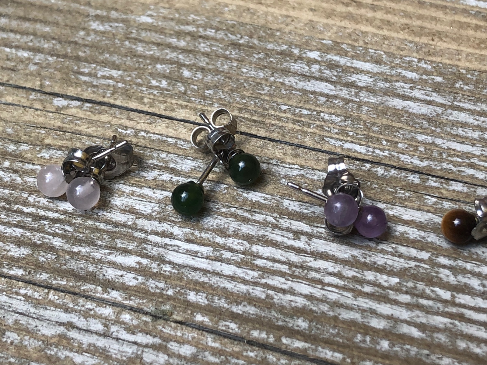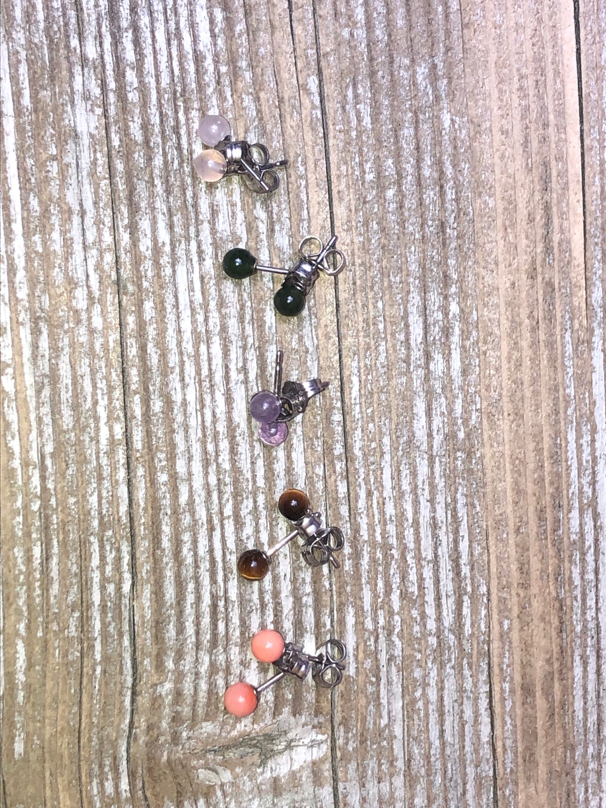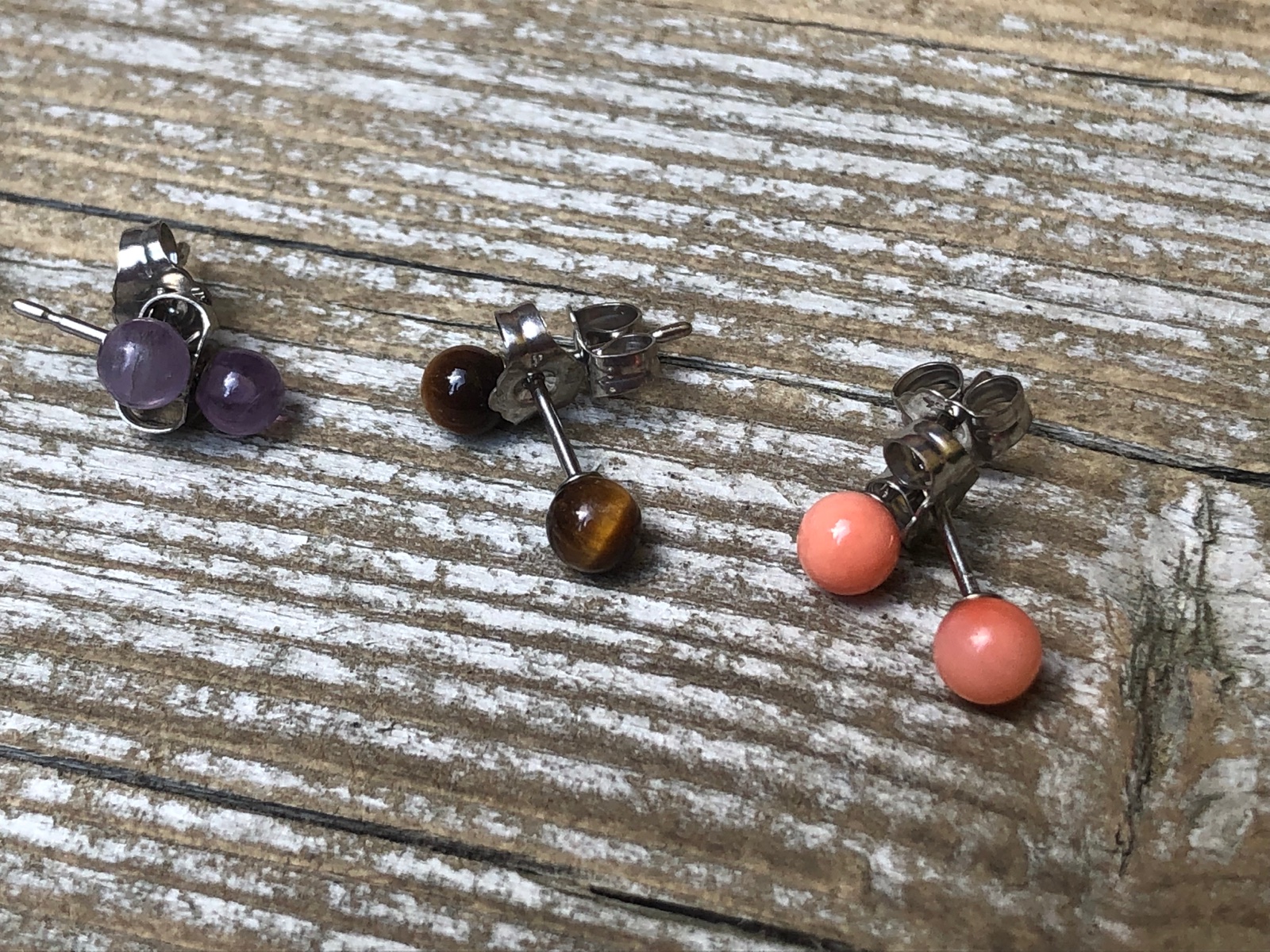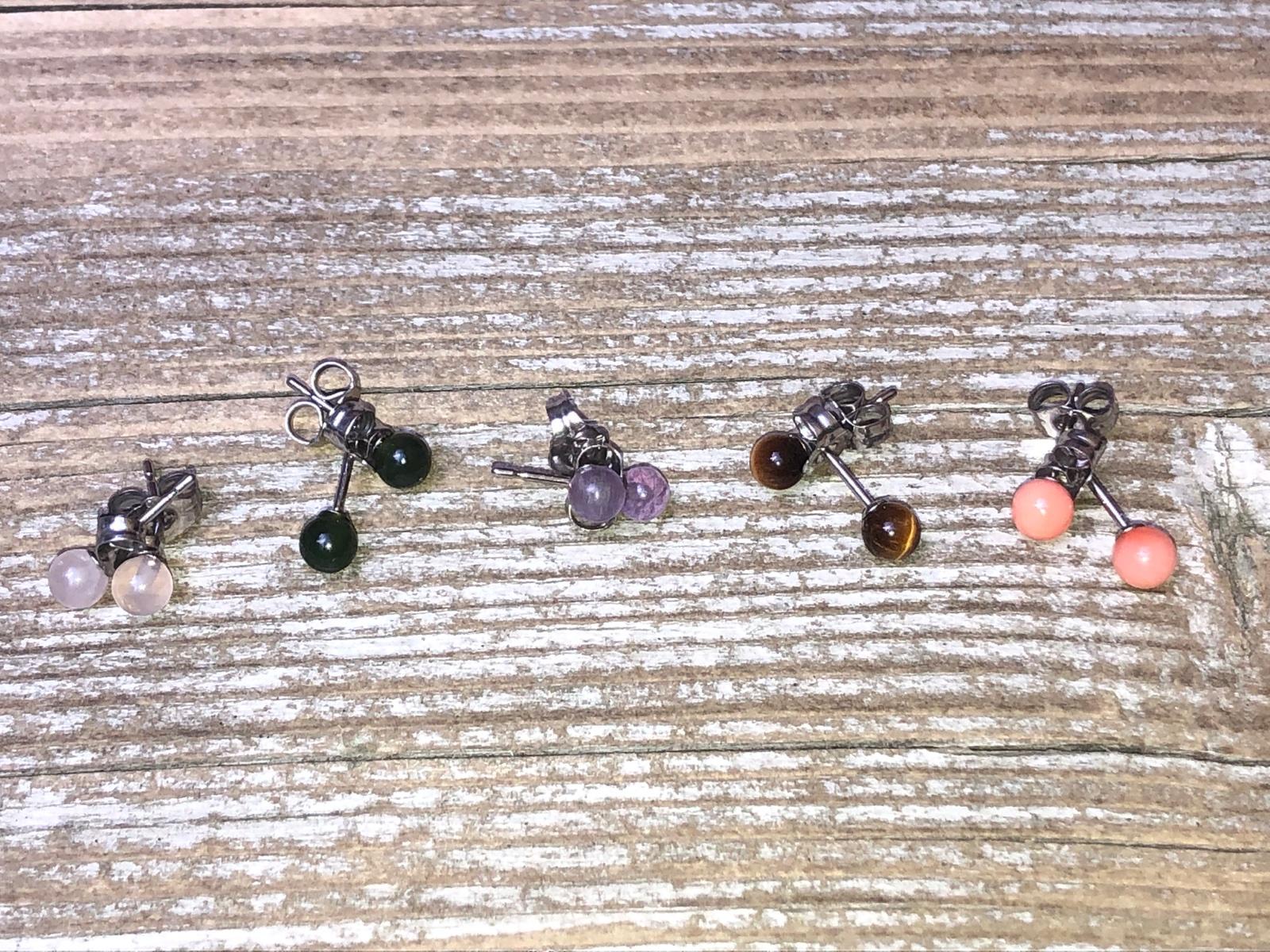 Malinké napichovacie nausnice, kameň- ruženín, tigrie oko,koral,ametyst, kus 4€ Striebro 925/1000