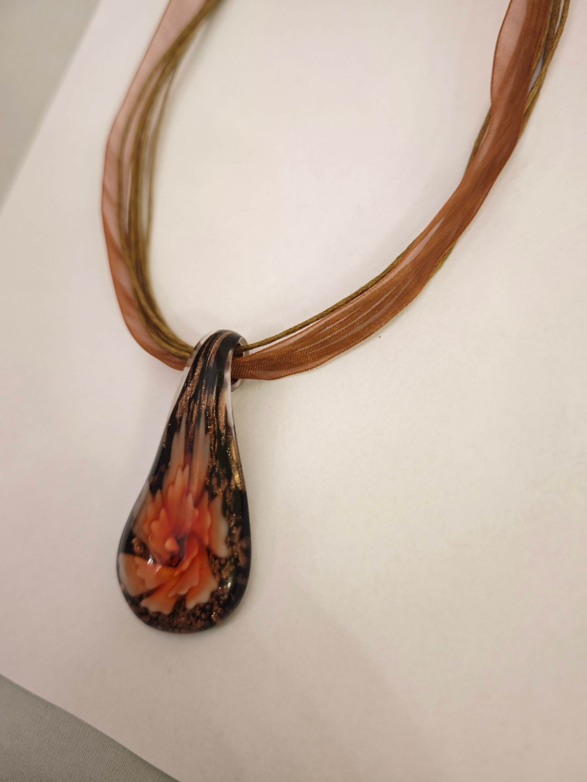 Originálny náhrdelník kúpený v USA v umeleckom obchode za 29 USD, nádherný sklenený prívesok 6 cm, dĺžka retiazky 2x22 cm, nový, nenosený. Mám aj iné v ponuke, viac kusov zľava 5-20%. Po zaplatení ceny a poštovného (obyčajne 1,40 eur, doporučene 2,40 eur) na účet posielam aj poštou.