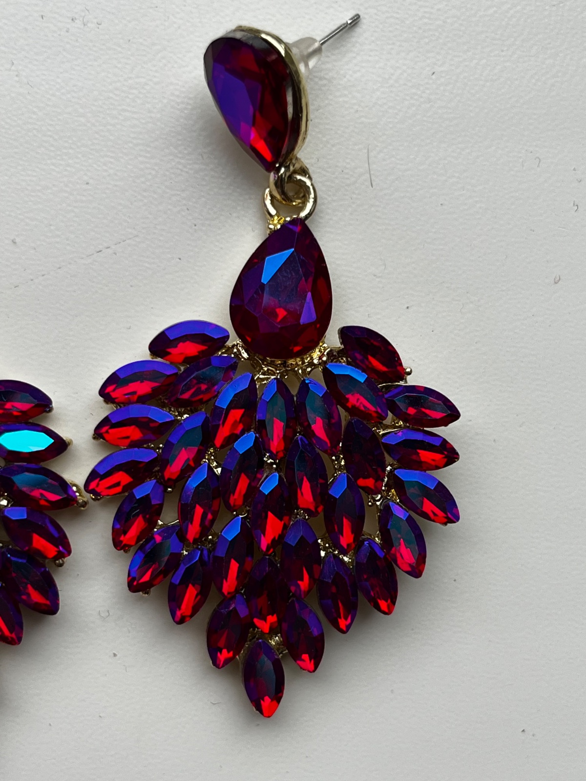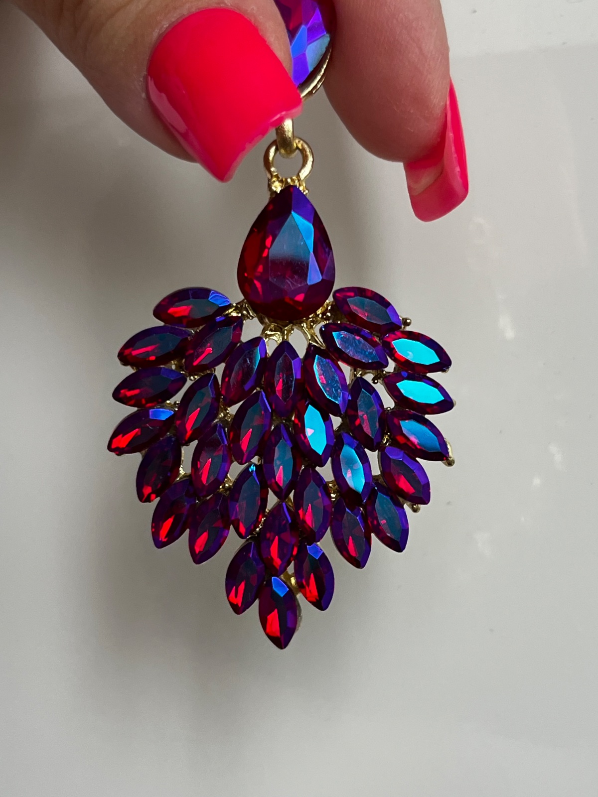 Exkluzívne kamienkové náušnice, farba sýto ružová- modrá-fialová, vyrobené z kvalitných komponentov a jagavých ozdobných kamienkov, elegantné napichovacky.