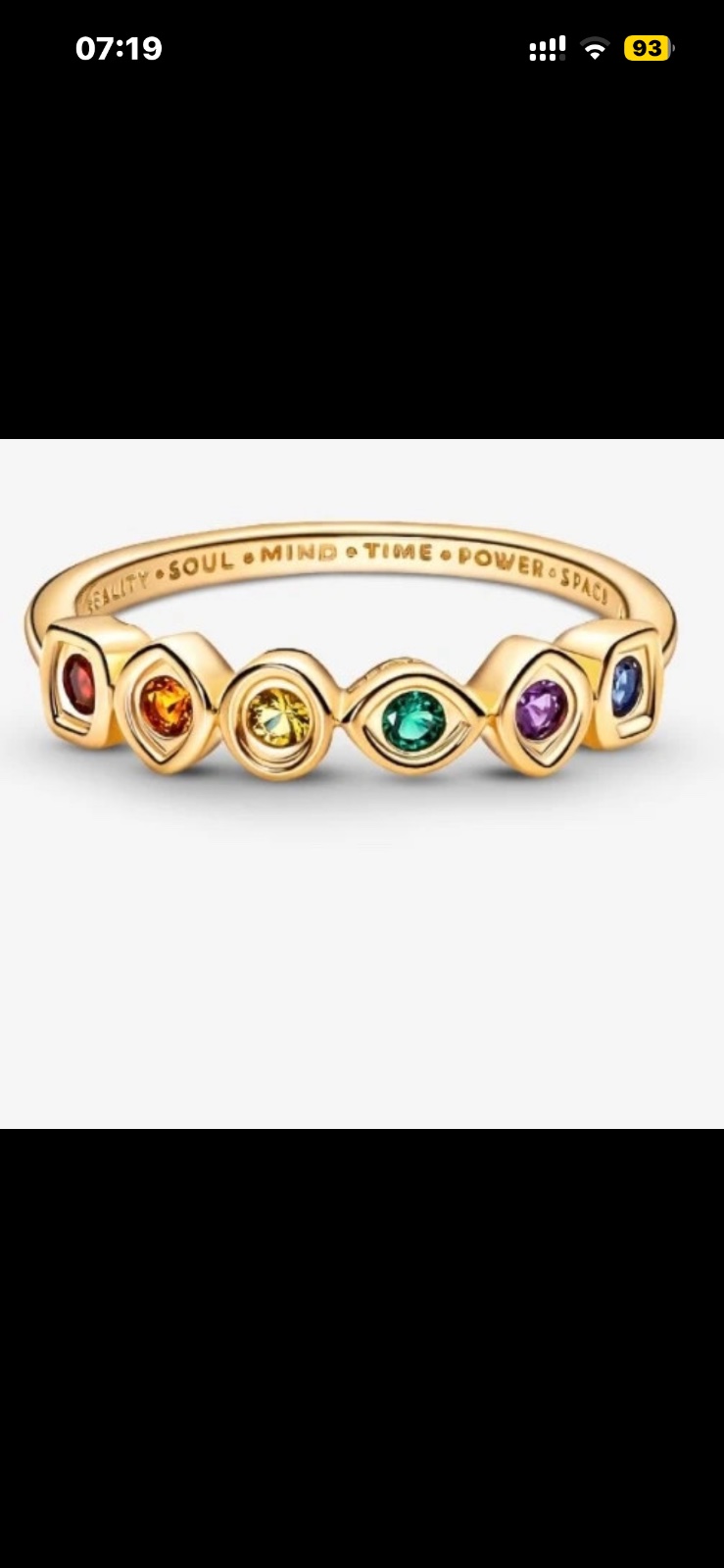 Prsteň unikátna zmes kovov pozlátená 14karatovym zlatom. Kamene nekonečna zo serie Marvel Avengers. Veľkosť 18.5mm. 58-59