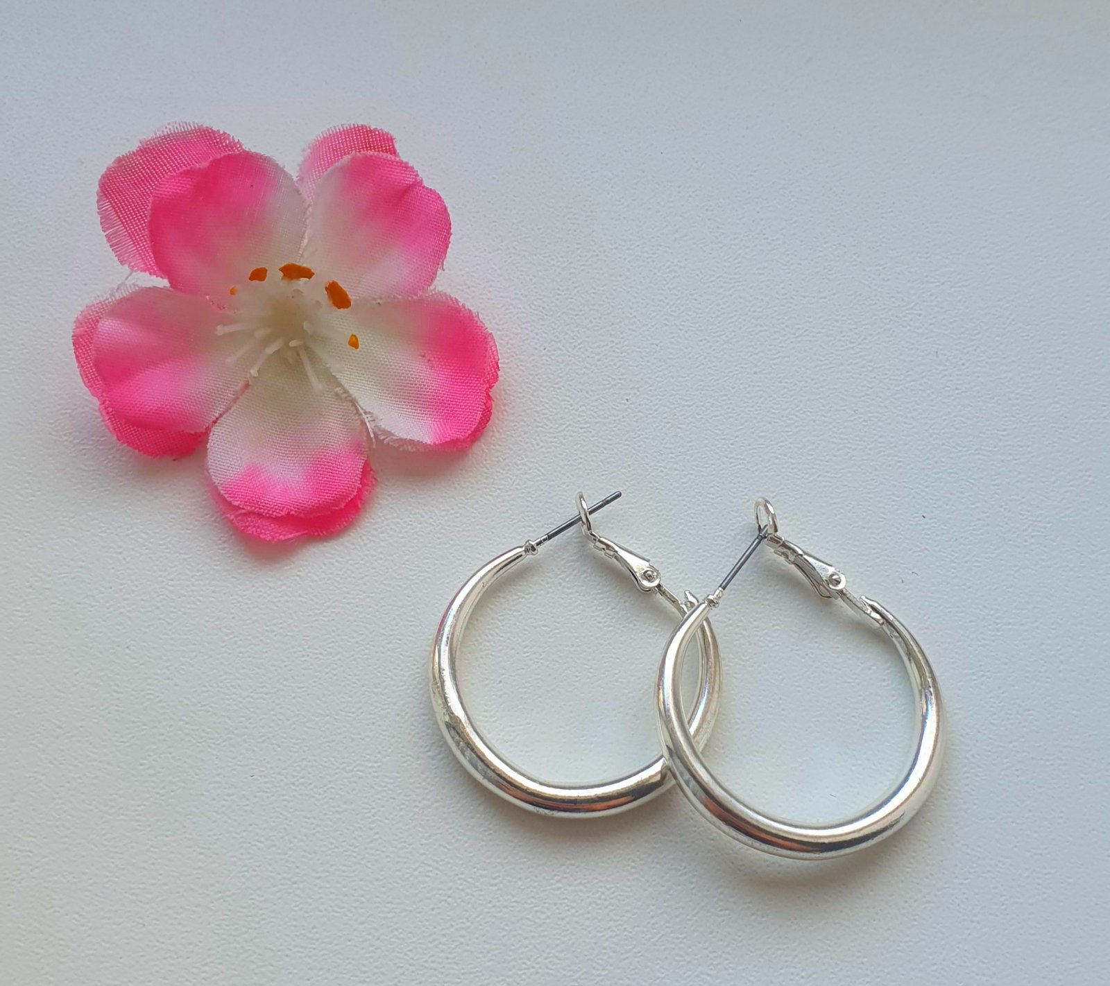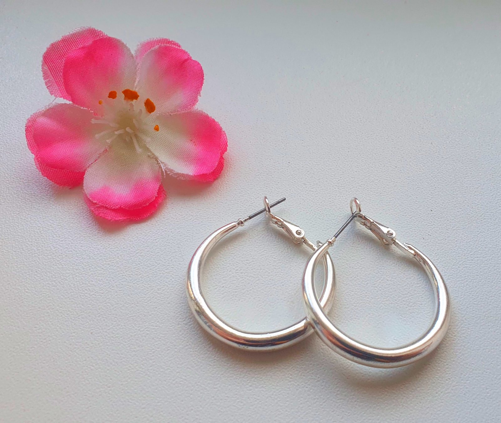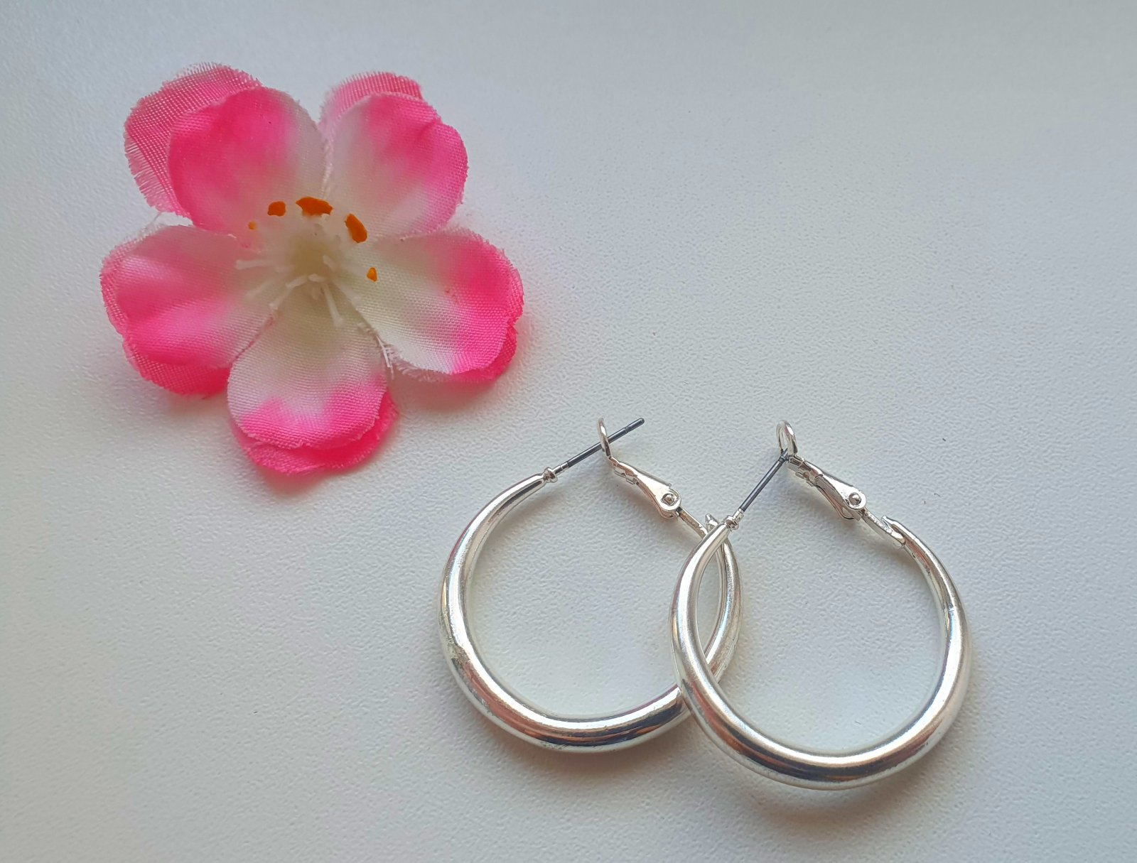 Nové kruhové náušnice striebornej farby. Priemer 2,5 cm