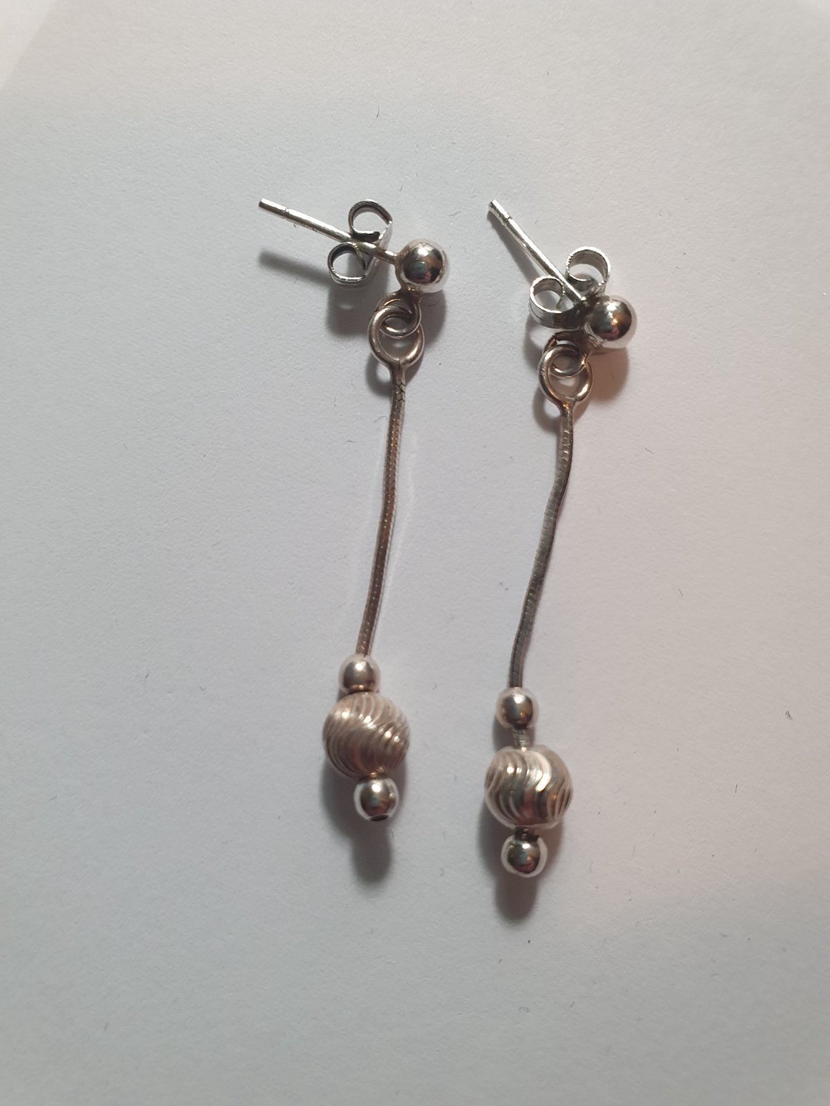 Raz použité nádherné náušnice s waw efektom, dĺžka 11cm.