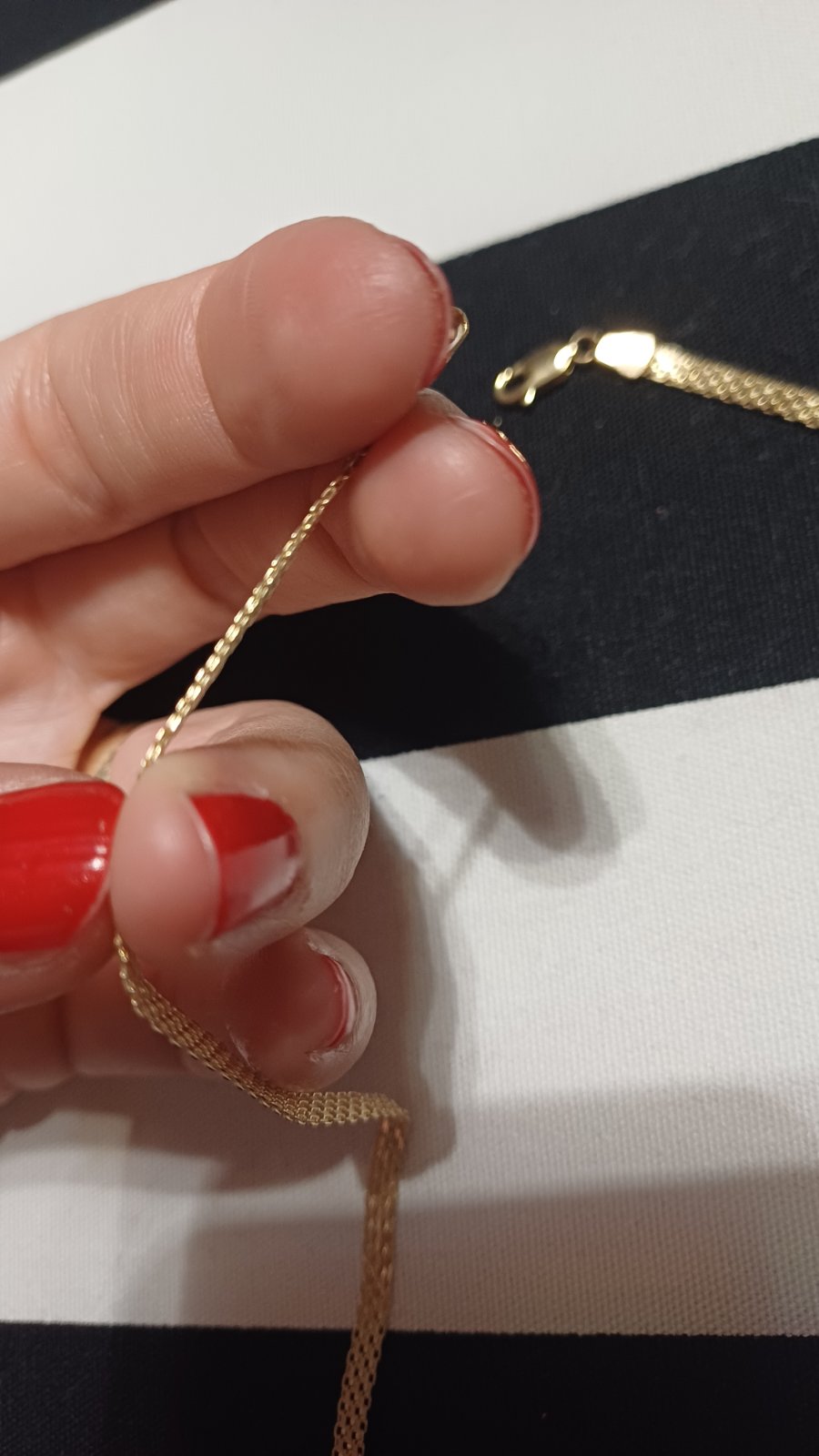 Krásny zlatý náhrdelník, plochý so vzorom. Dĺžka cca 45 cm. Žlté 14 k zlato. Nosený, ale stále krásny.