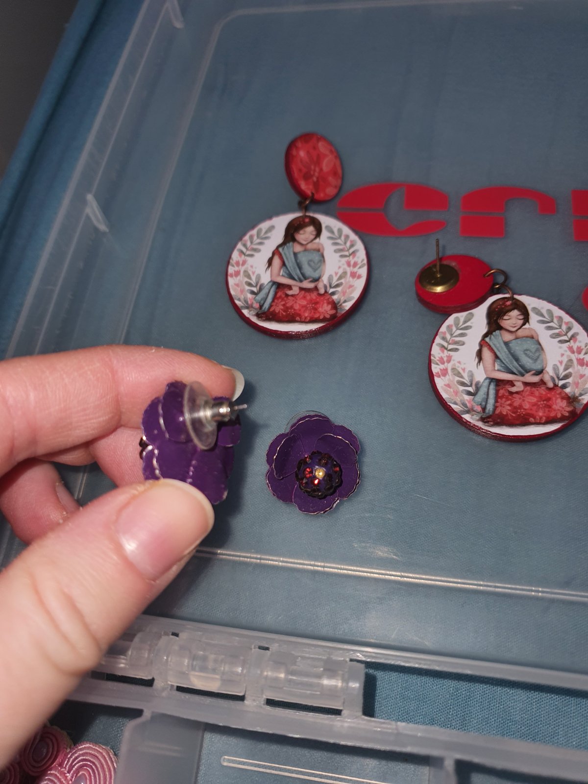 Fialové náušničky kvietky 1 eur