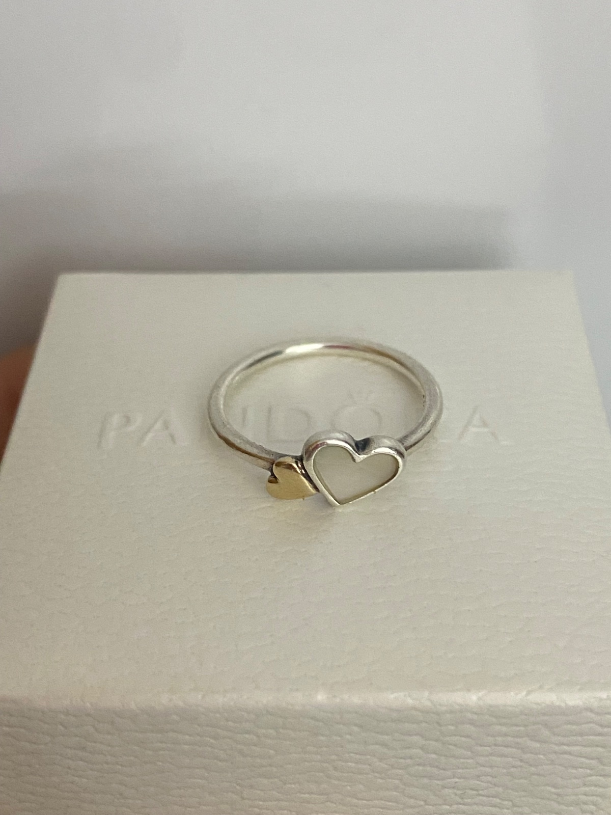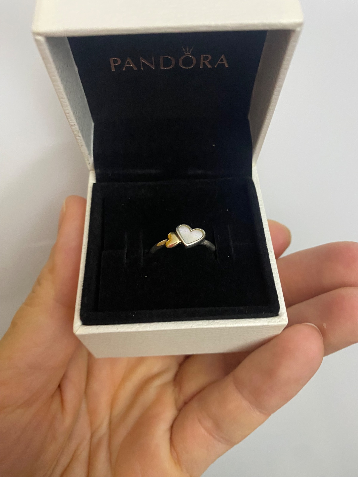 Originál Pandora bicolor prsteň dve srdcia.