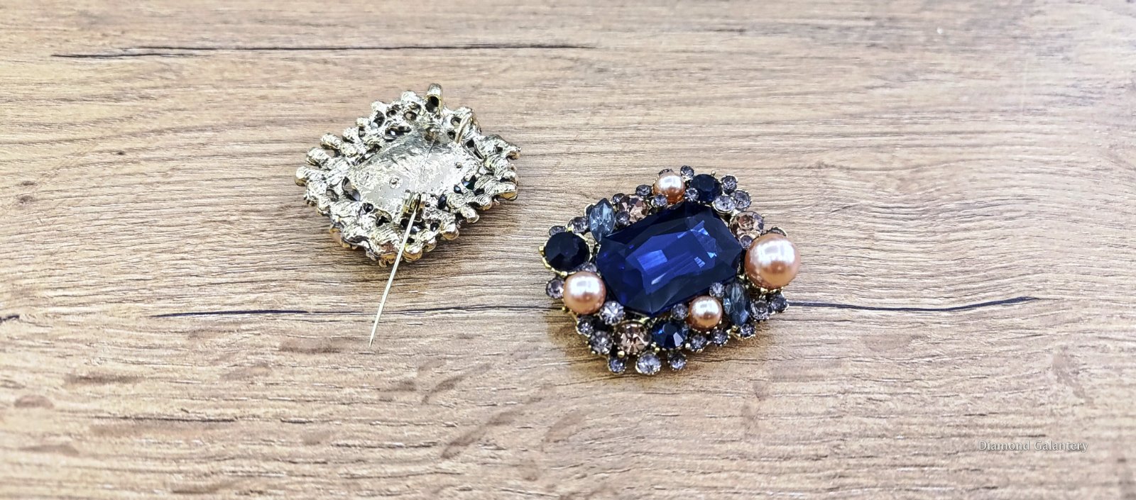 Brošňa, rozmer: 48 mm x 40. Materiál: kov, štrasové kamienky. Zapínanie je zo zadu brošne. Cena je uvedená za jeden kus.