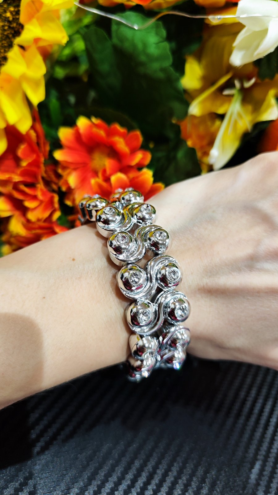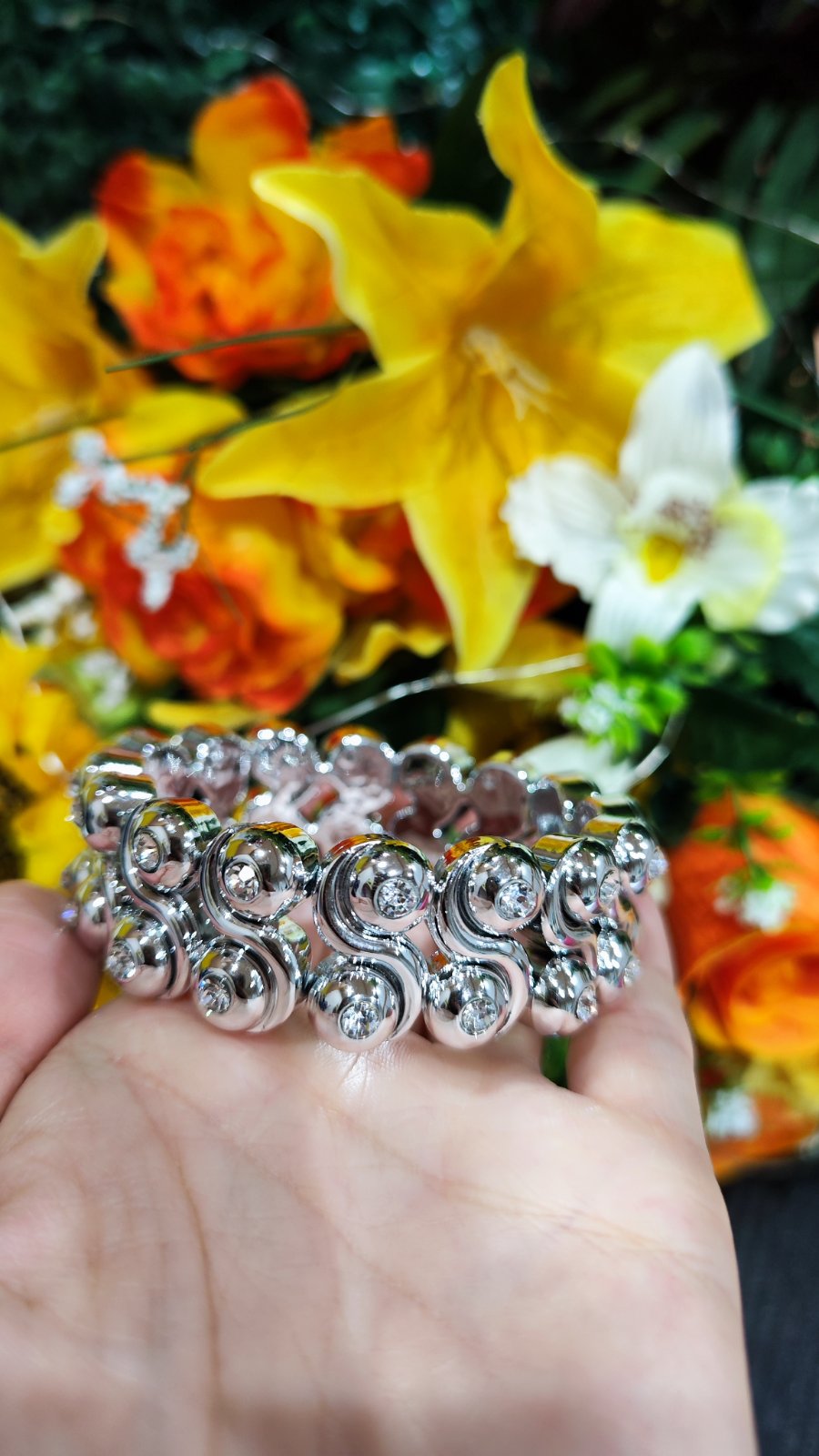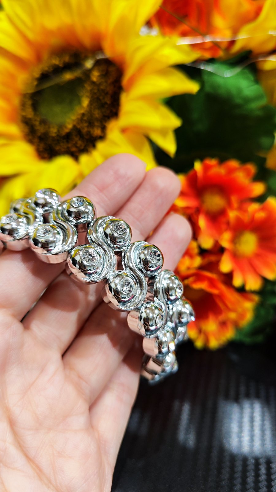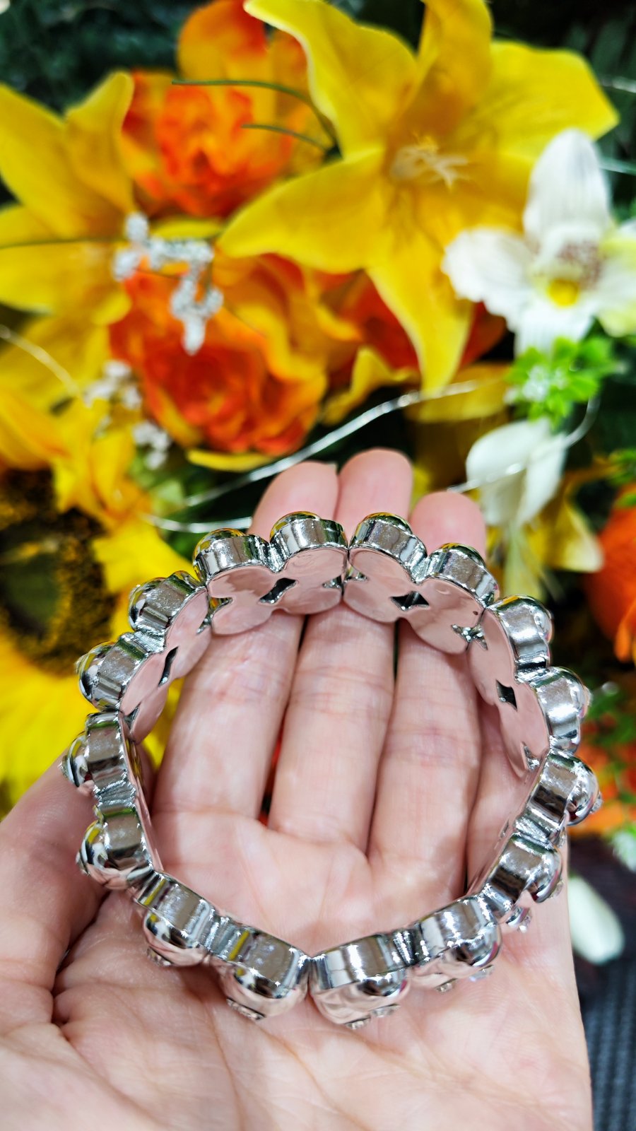 V striebornej farbe, veľkosťou sa prispôsobí.