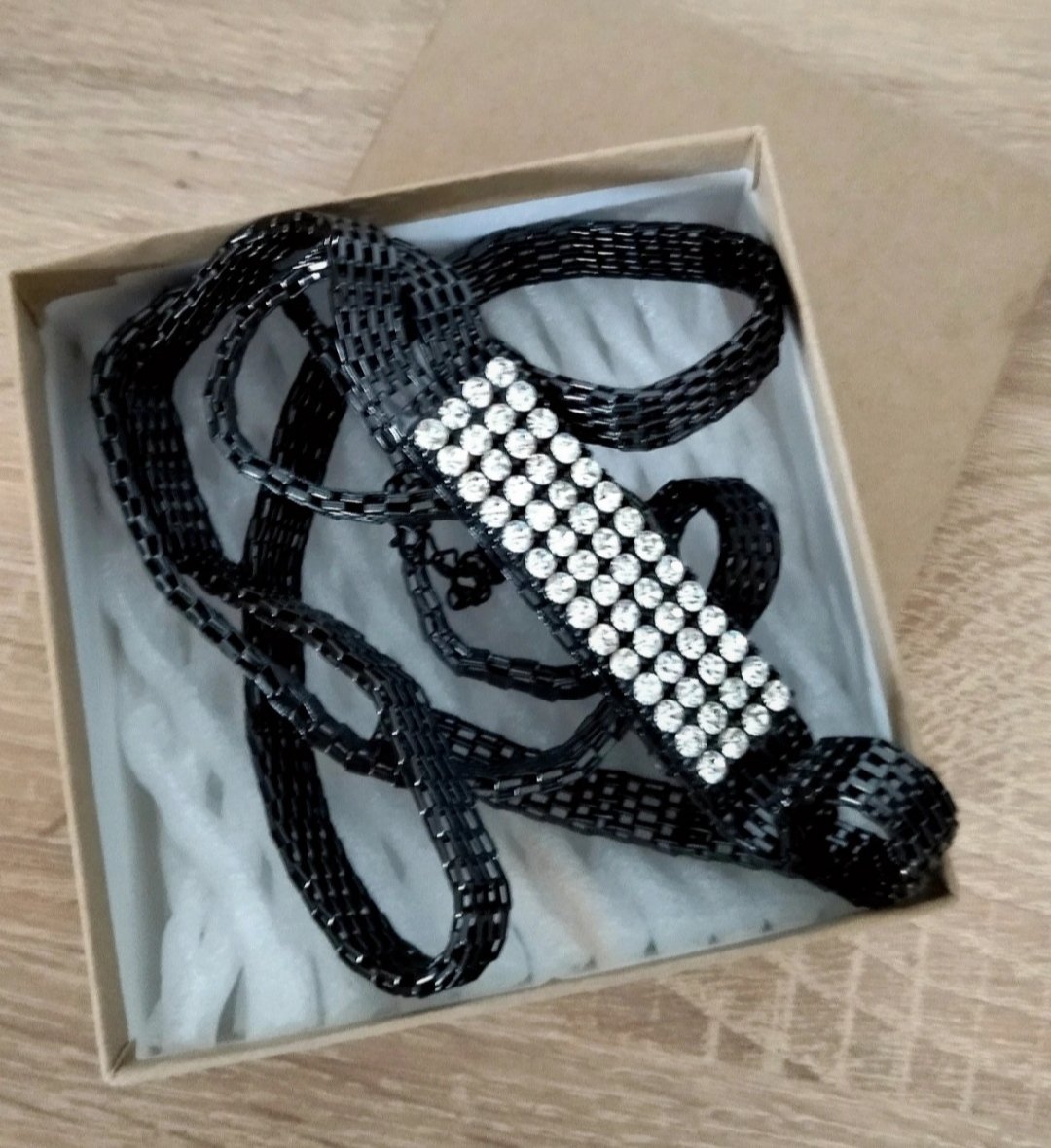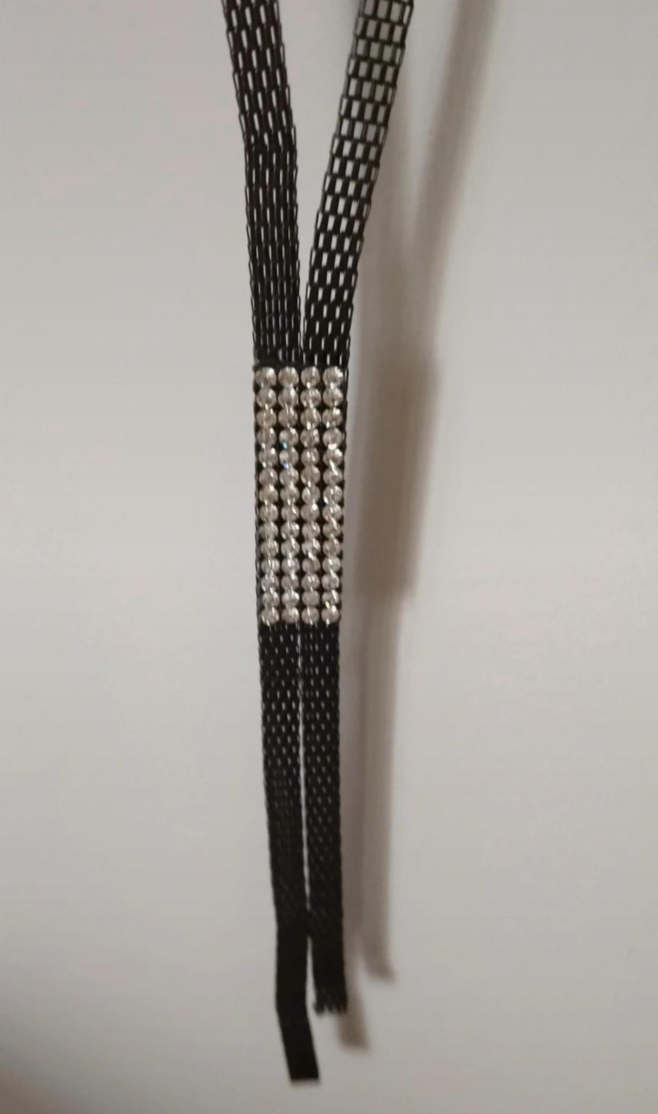 Posuvam dalej, bez chyb. Na magneticke zapinanie. Cierna sietka, bezfarebne "kamienky".