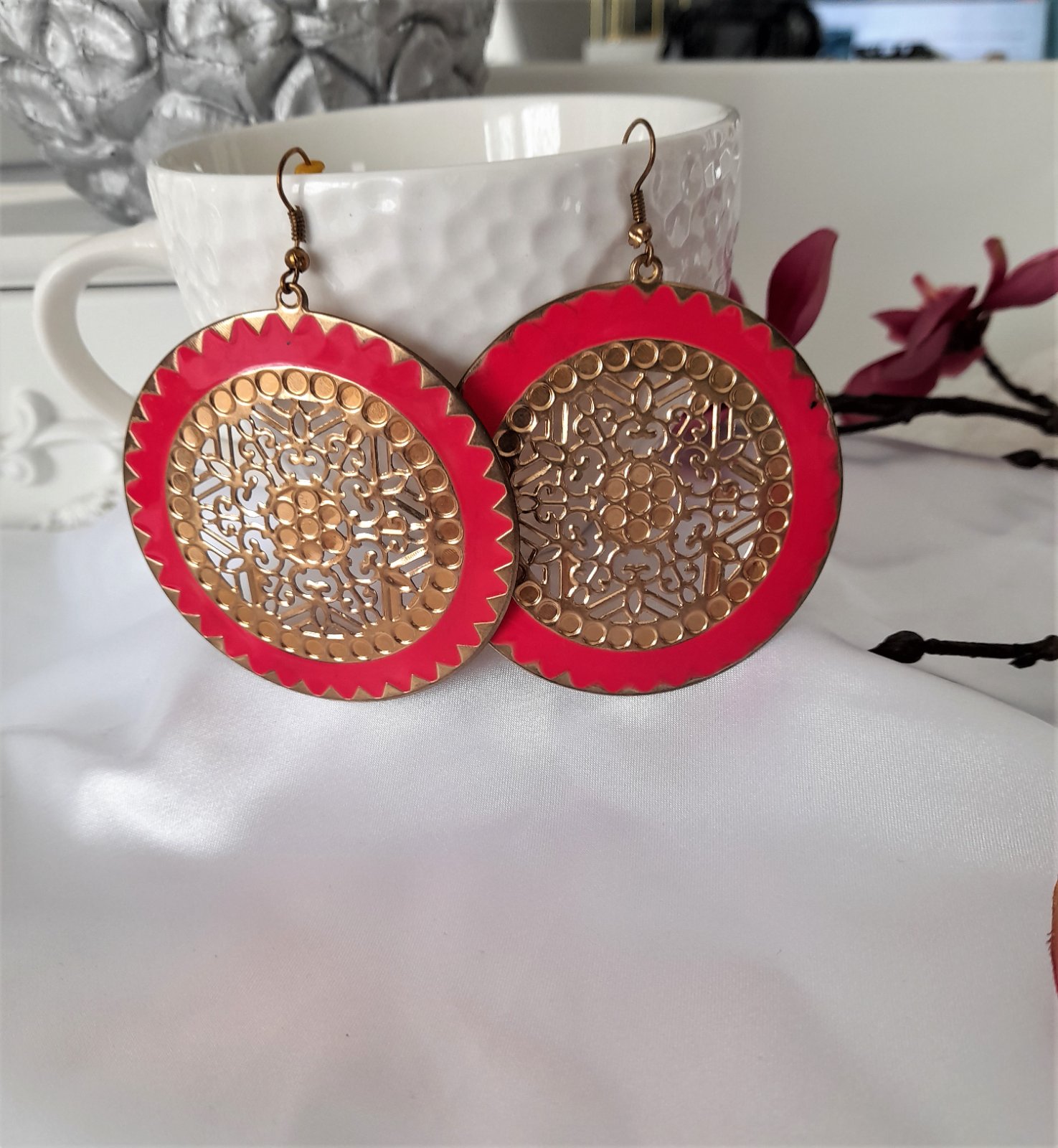 nevymieňam!asi 2 x na na ušiach,bižutéria,pc-12eur-priemer 6cm,v ponuke aj v zelenej farbe v druhom inzeráte..kuk aj na iné moje inzeráty