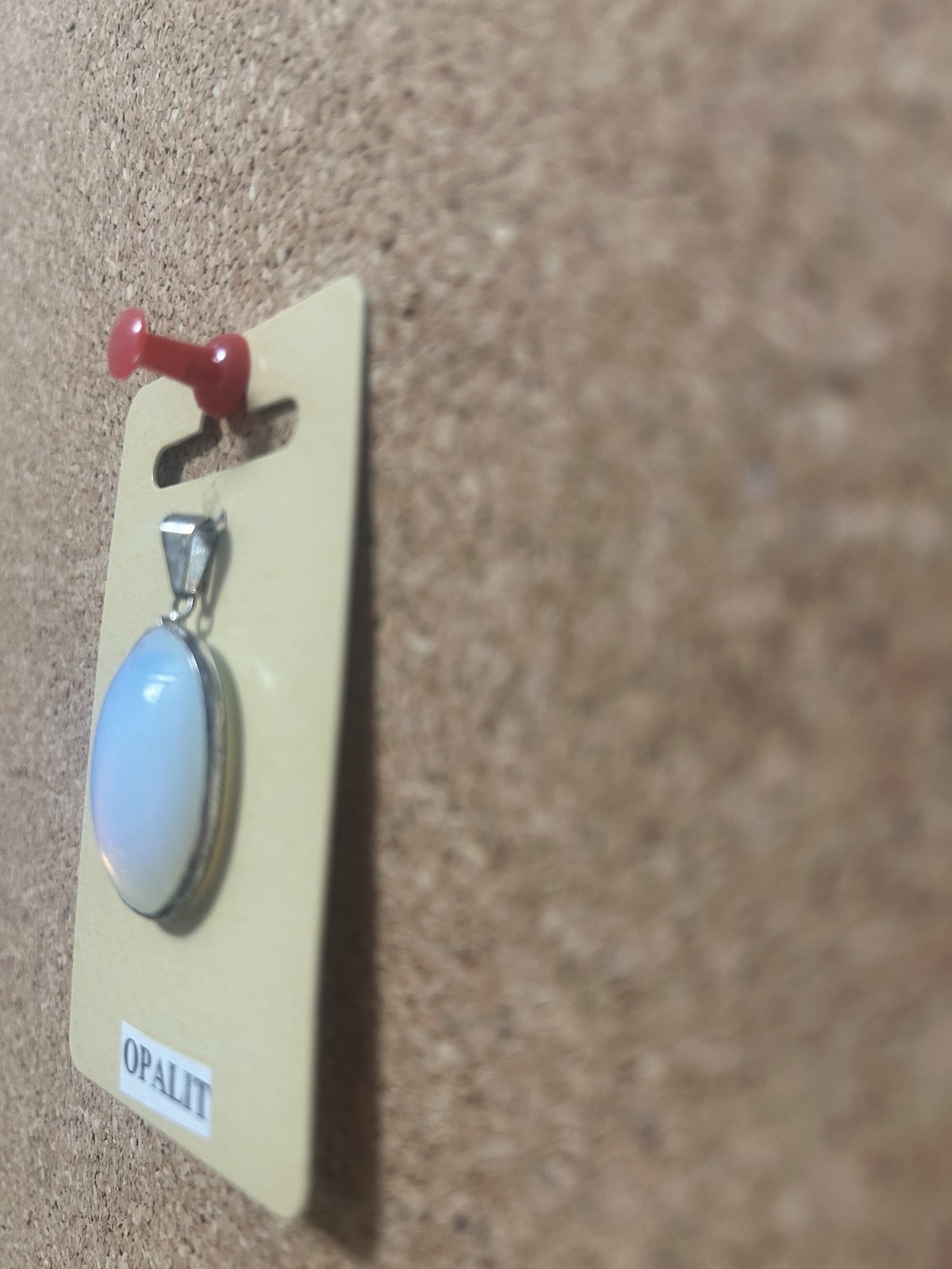 leštený opalit osadený v kovovej obrúčke striebornej farby. Veľkosť kameňa 3x2,3 cm- nový, nenosený