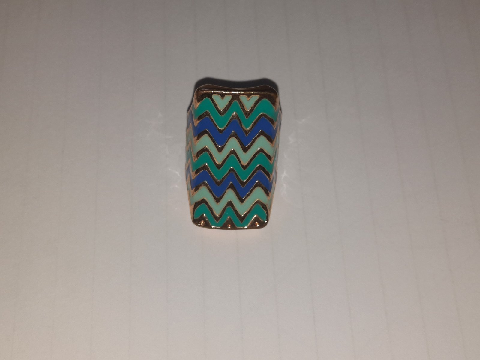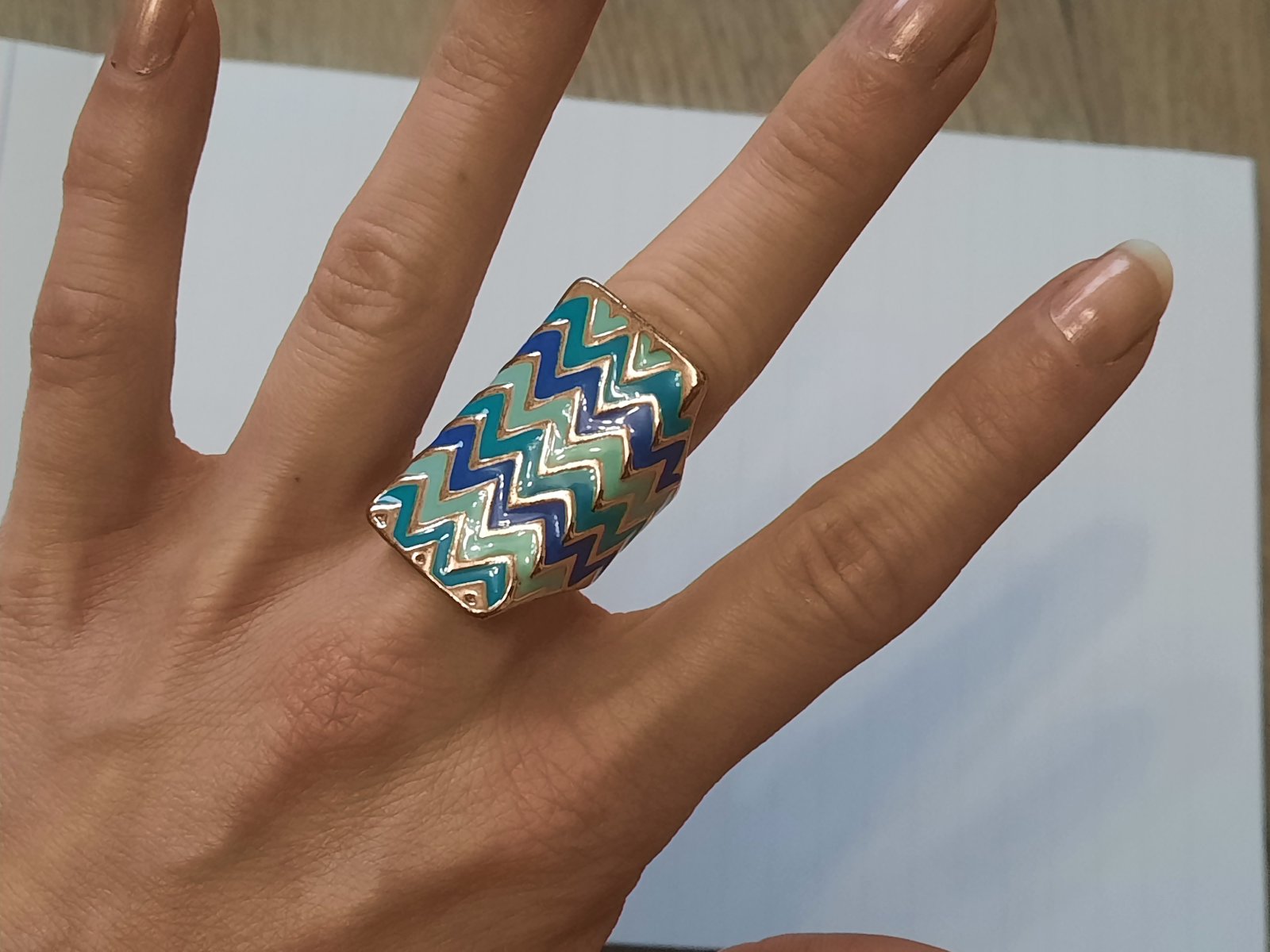 1. Prsteň zlatej farby s tyrkysovým falošnžm diamantom, veľkosť XS, 5€