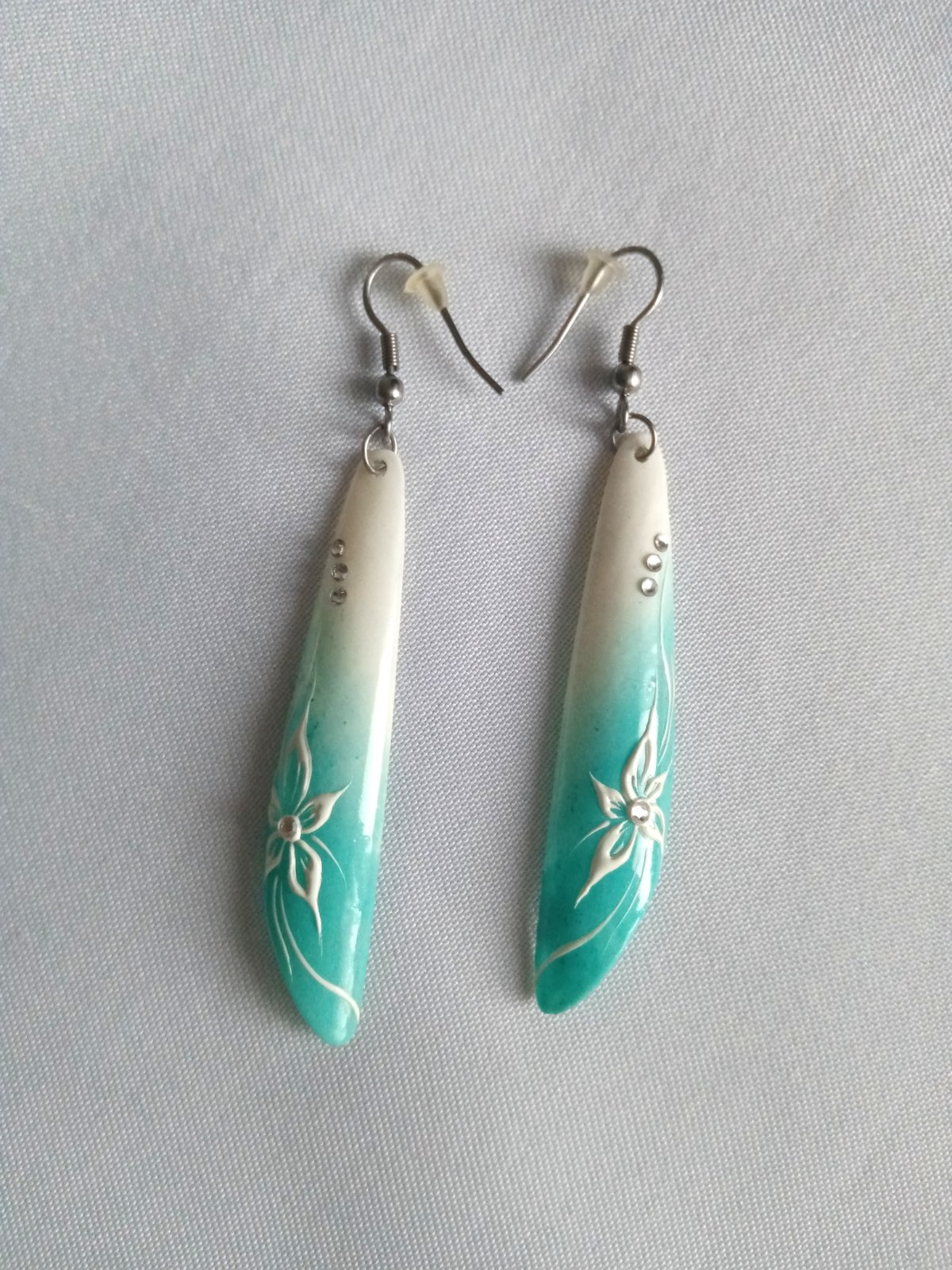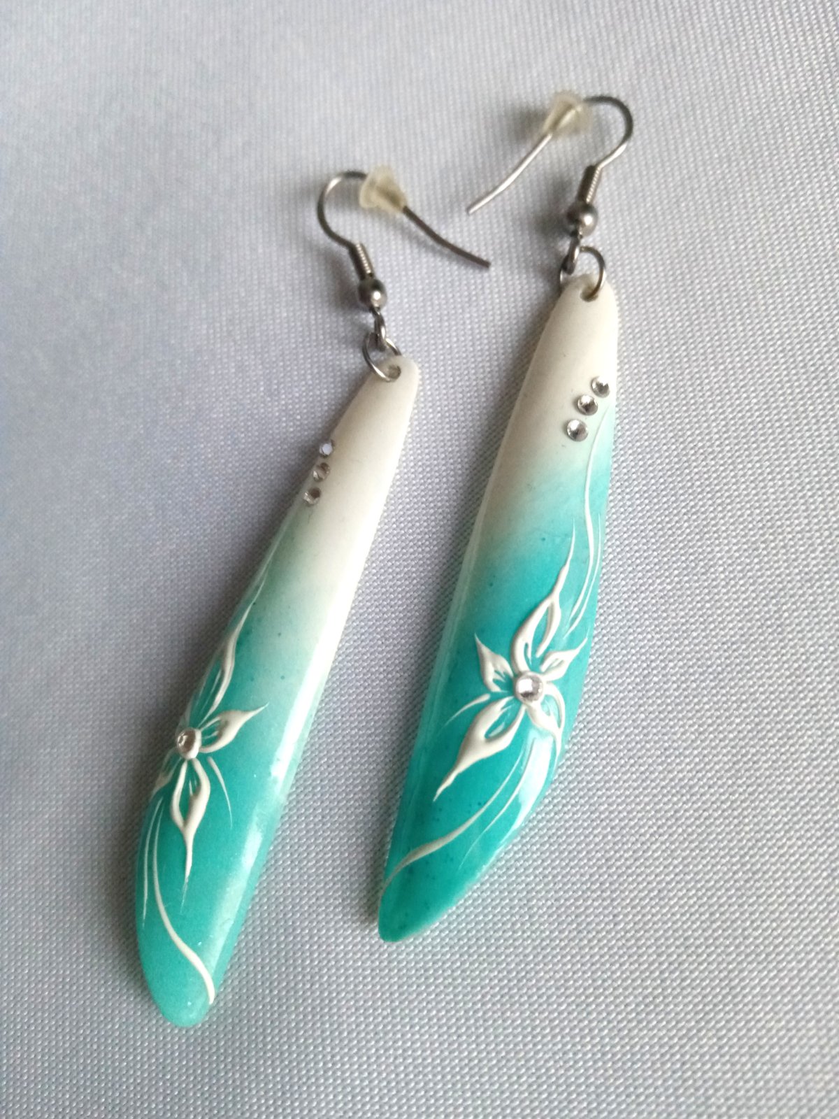 Dámske náušnice zdobené kamienkami. Dĺžka 5,5 cm.